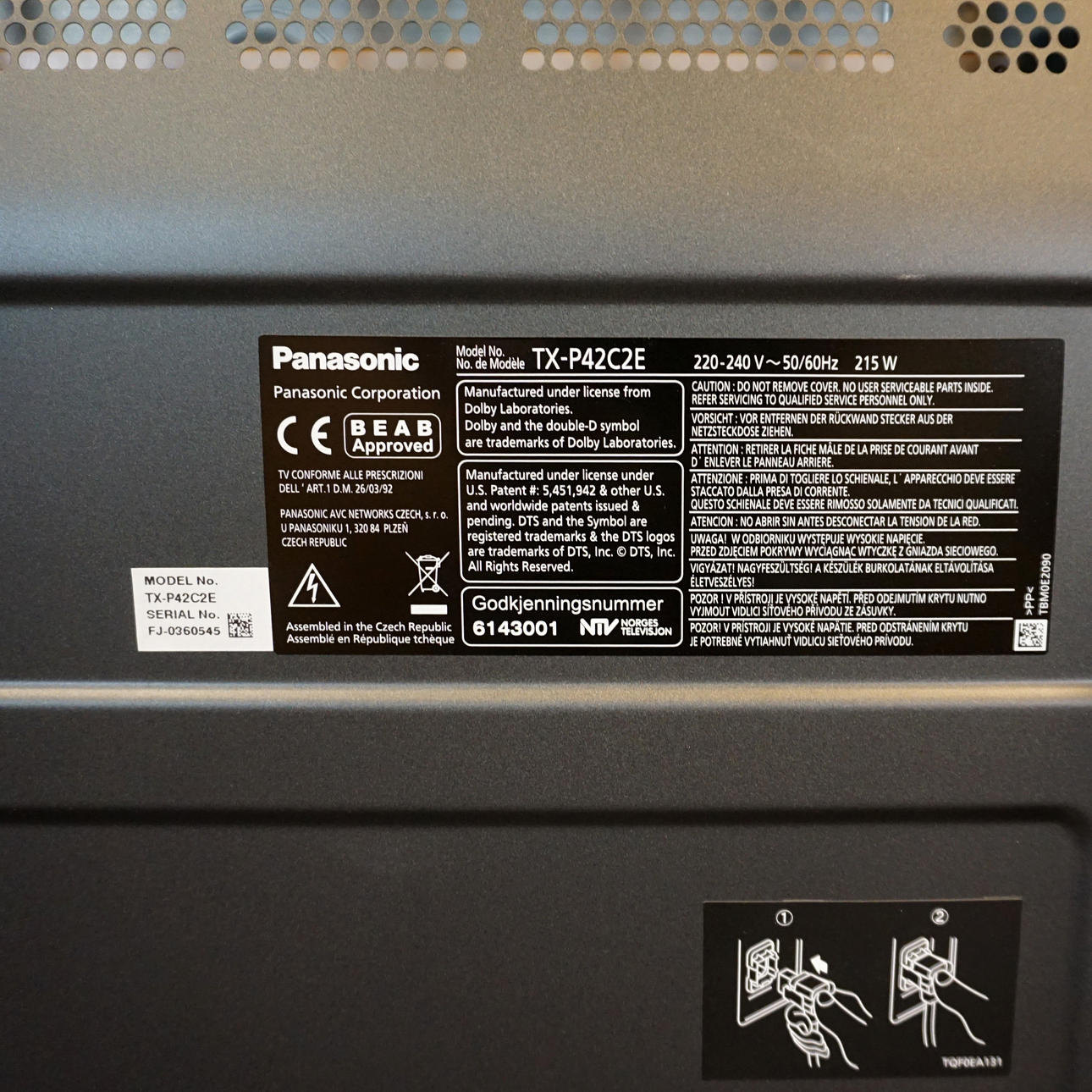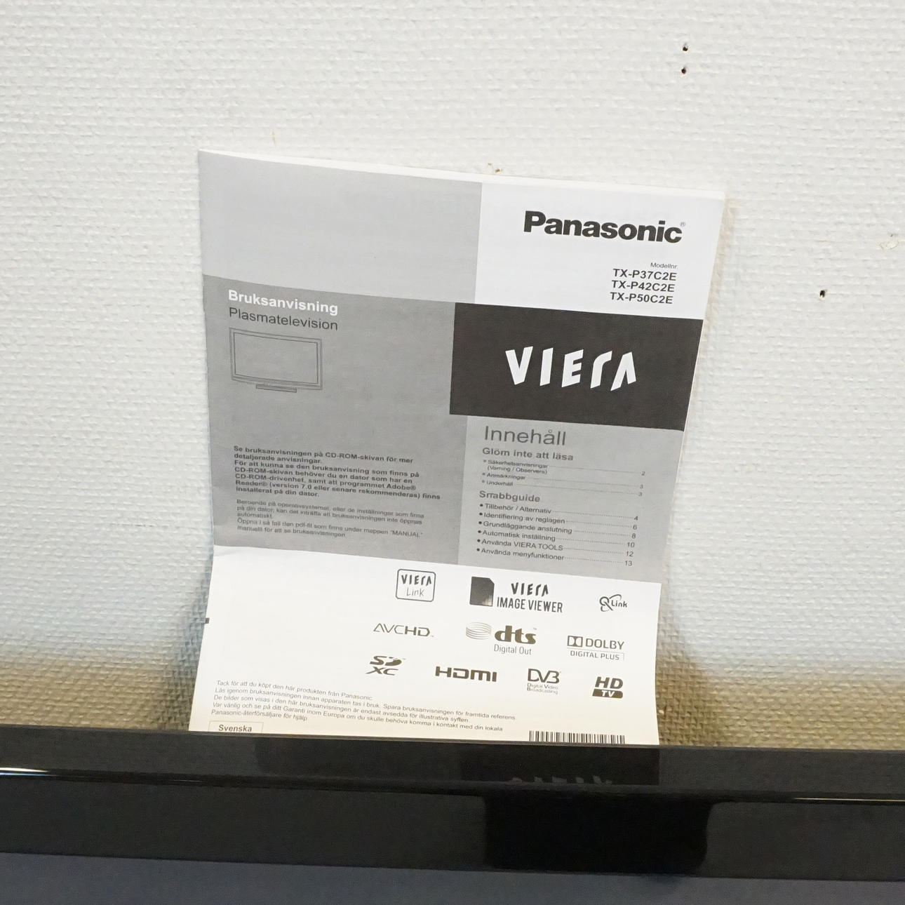 Modelnr:TX-P42c2E, orginalkartong , bruksanvisning, Fjärrkontroll, Väggfäste, Bredd ca 102 cm, Höjd ca 66 cm.