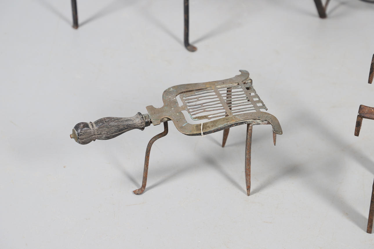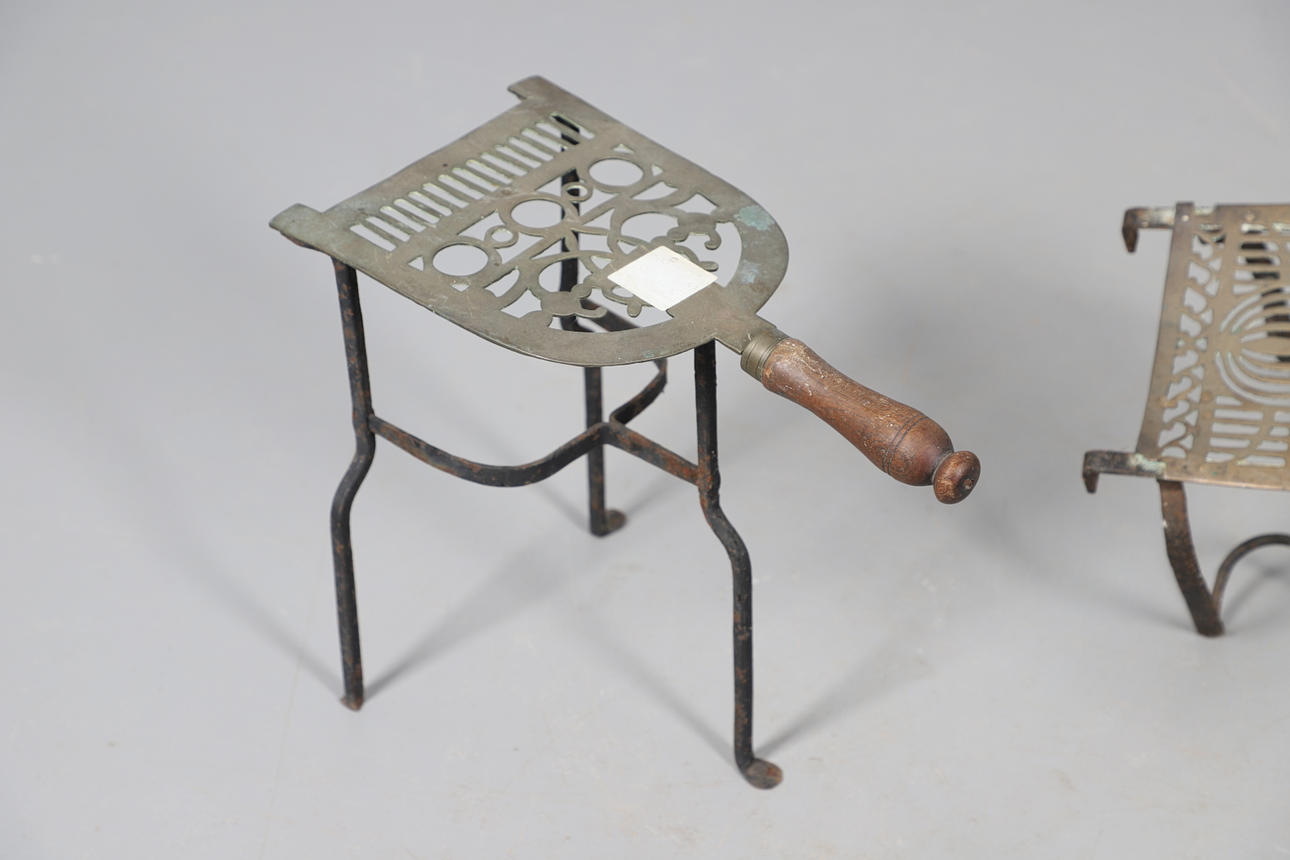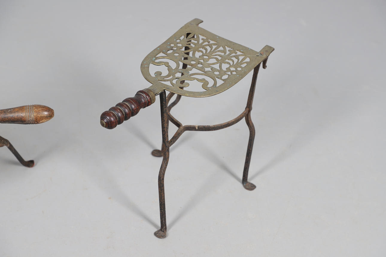 Liknande mönster, mässing och gjutjärnskonstruktion med trä/harts handtag. Genomsnittlig höjd 30cm. (5).