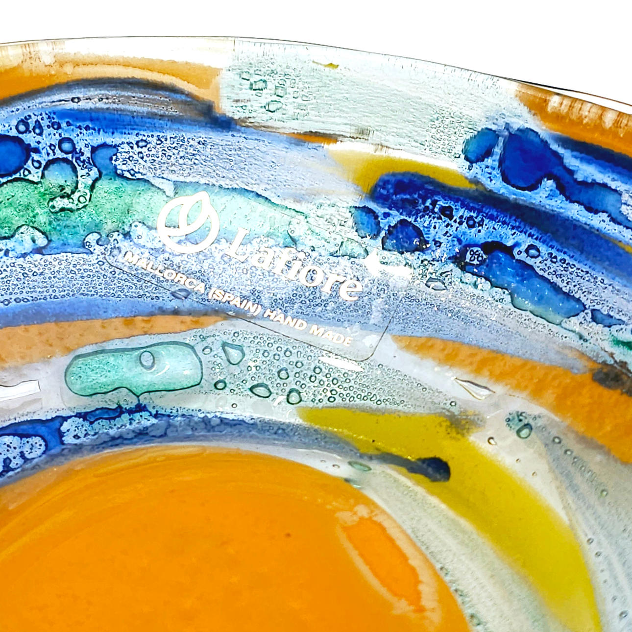 CENTRITO I MÅLAT MALLORCANSKT GLAS, ”LA FIORE”.