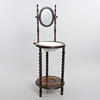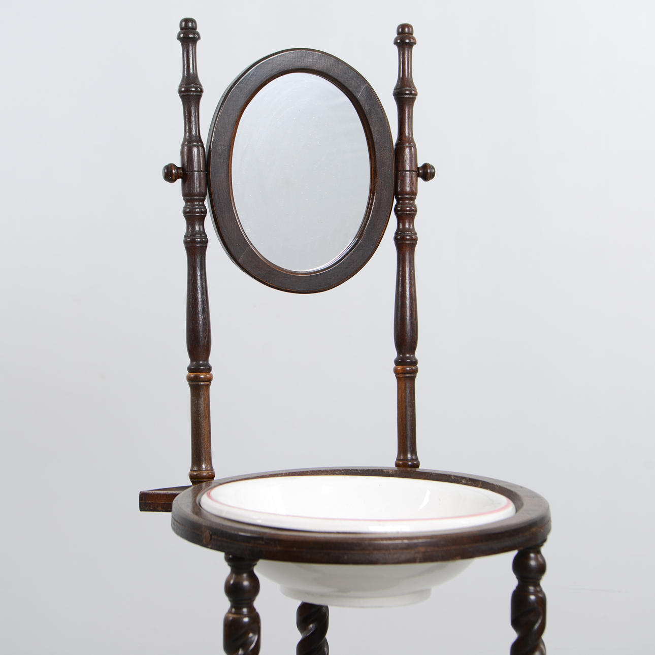 Stomme i betsat trä. Ställbar spegel. Fat i keramik. Höjd 130 cm.