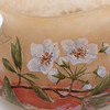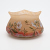 Art Nouveau, mottlat glas i orange och rosa med överfång med plaketter, etsad och emaljmålad dekor föreställande blommande fruktträd, signerad "DAUM NANCY" och med Lorrains kors, diameter 13,5 cm.