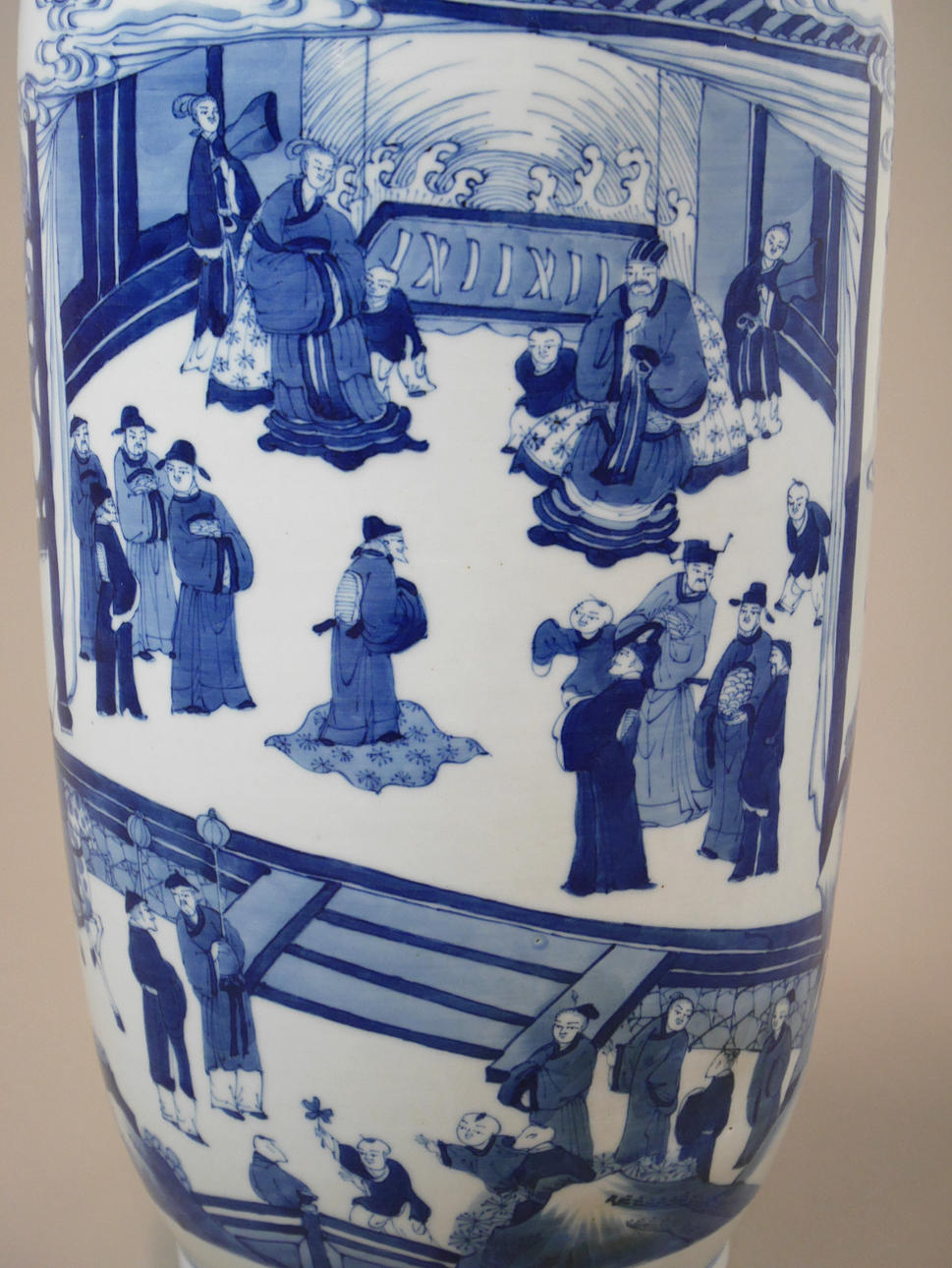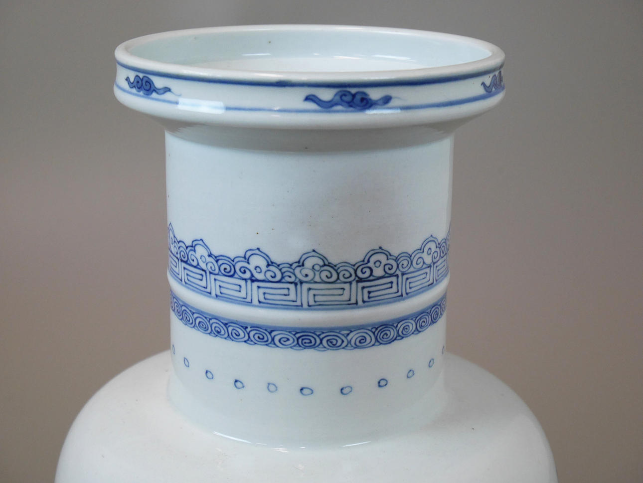 Vit och blå Kinesisk porslinsvas. 1800 tal. Höjd 50 cm.