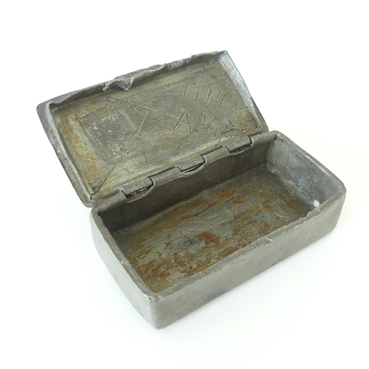 Med dekor både över- och undersida. Insida lock ristat 1774, se bild.