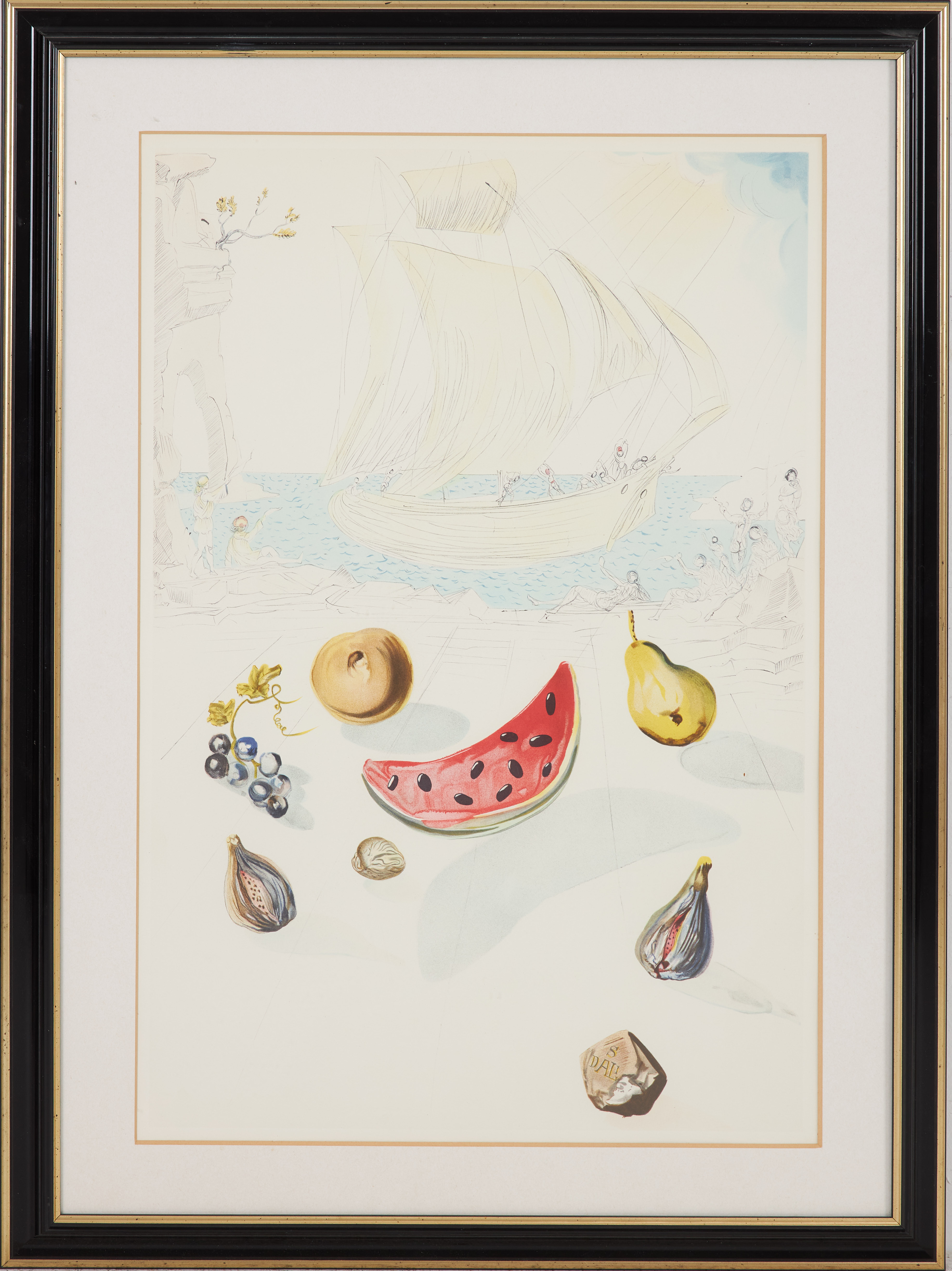 3421907. SALVADOR DALÍ. EFTER. "Ship and Fruit", litografi.
