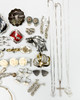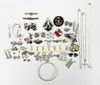 Bijouterier 49 delar. Ett par örhängen med detaljer i 14k guld. Brosch i 8k guld. Totalvikt 235 gram.