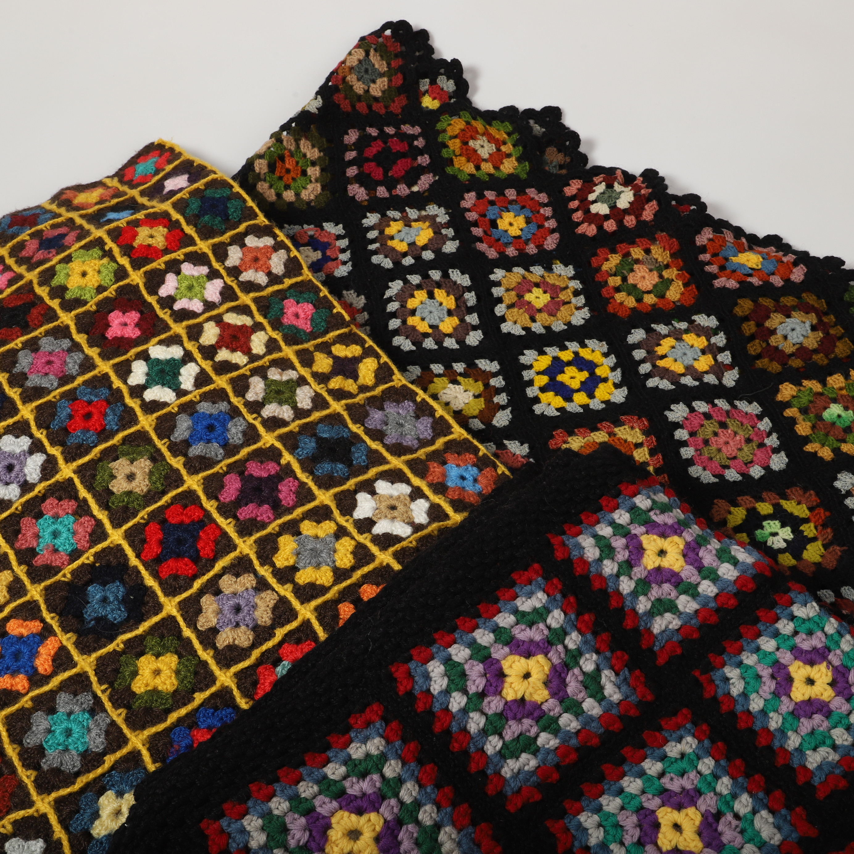 3423503. PLÄDAR, 3 stycken, virkade mormorsrutor.