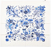 Sidentwill . Blå blommor mot vit botten. Signerad V. Accornero. Etikettmärkt "GUCCI Made in Italy". 90 x 90 cm.