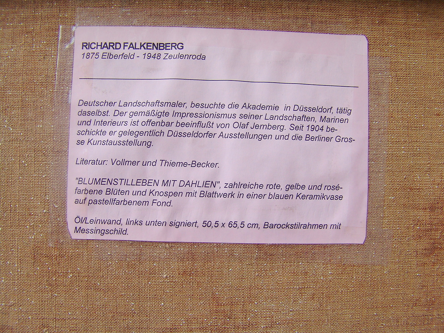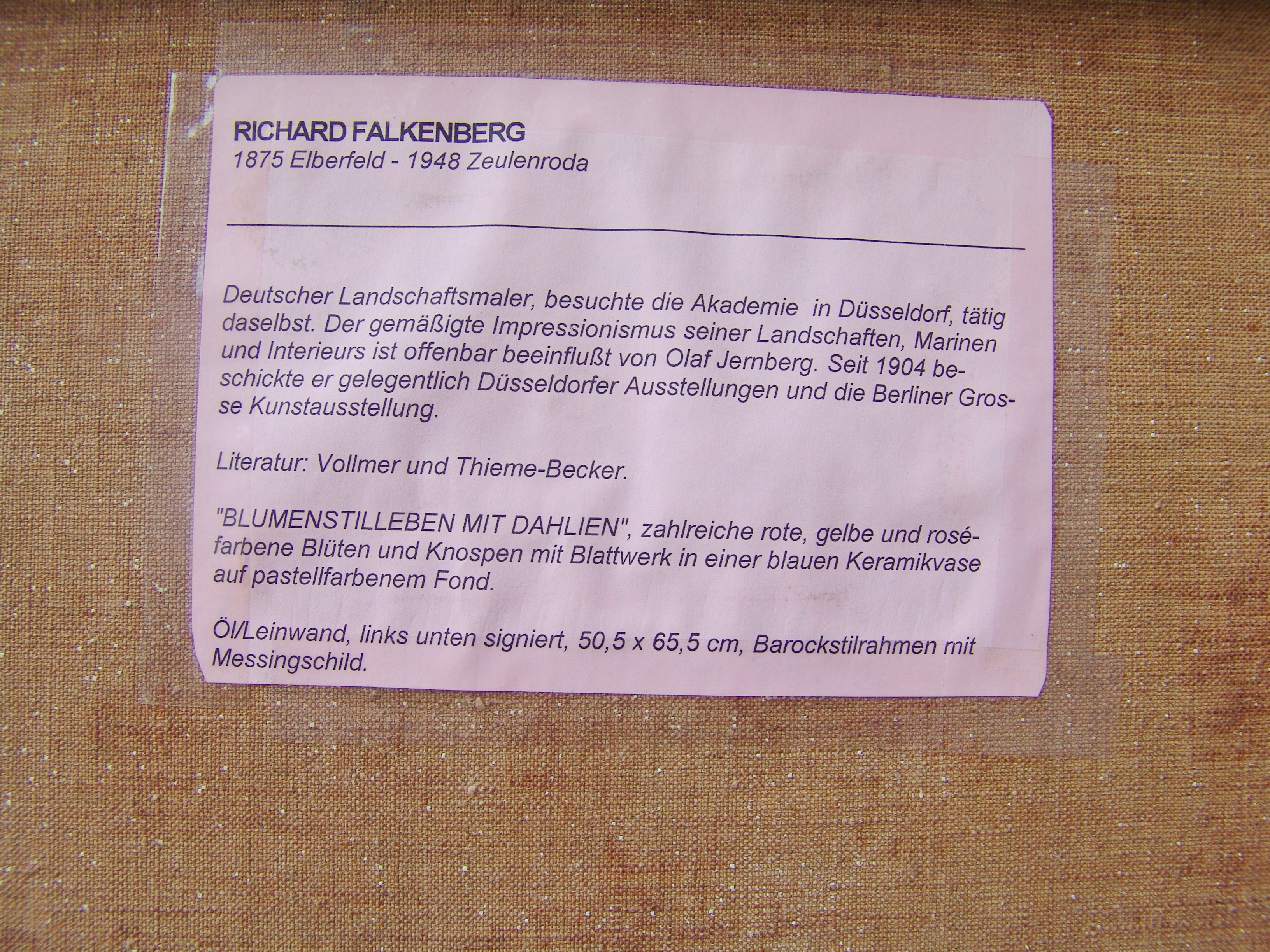 342644. RICHARD FALKENBERG. Stilleben med Dalien.