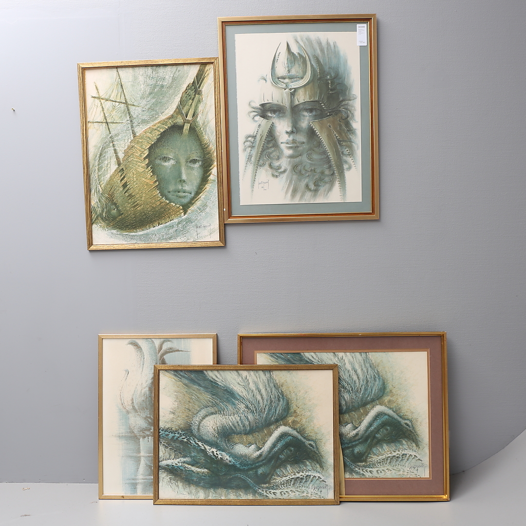 343350. FRANCIS DE LASSUS SAINT-GENIES. Färglitografier, 5 st, signerade.