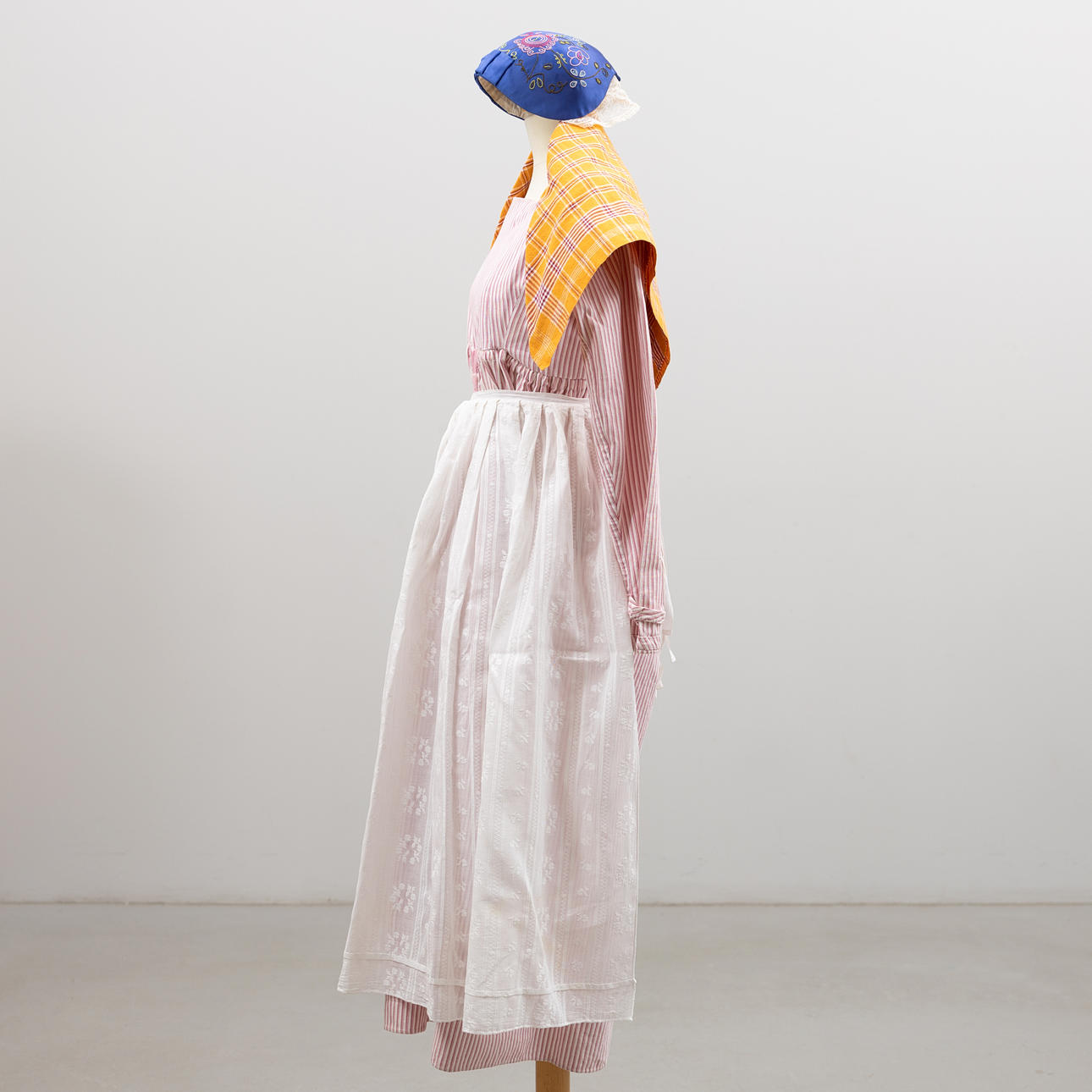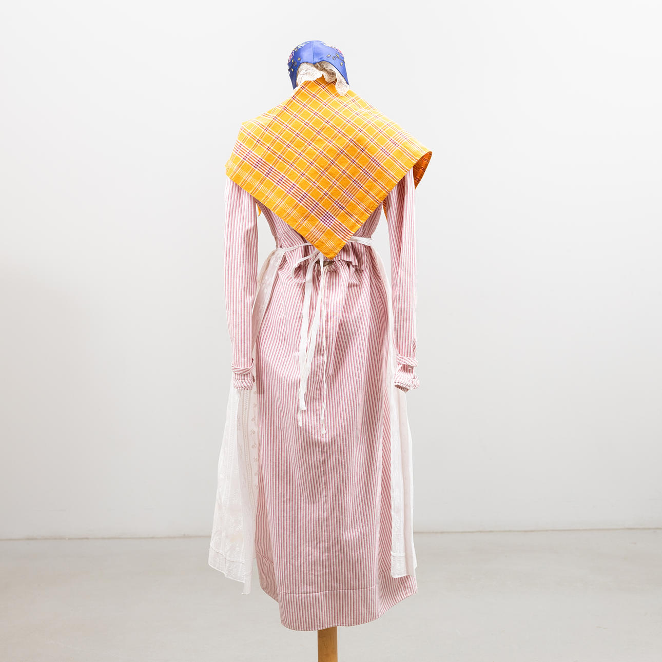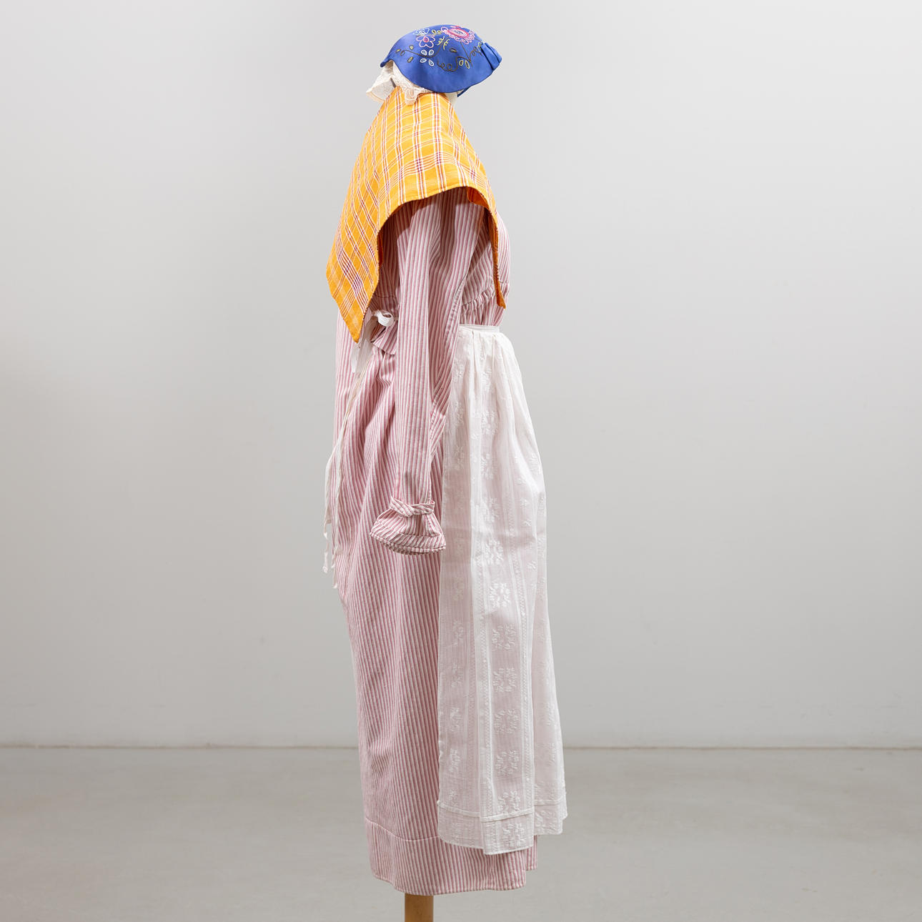 Bruksslitage, enstaka fläckar. Klänning förlängd. Hätta med mjuk form.