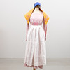 Klänning, längd ca 131 cm, midjemått ca 99, snörning, ärmlängd ca 65 cm.