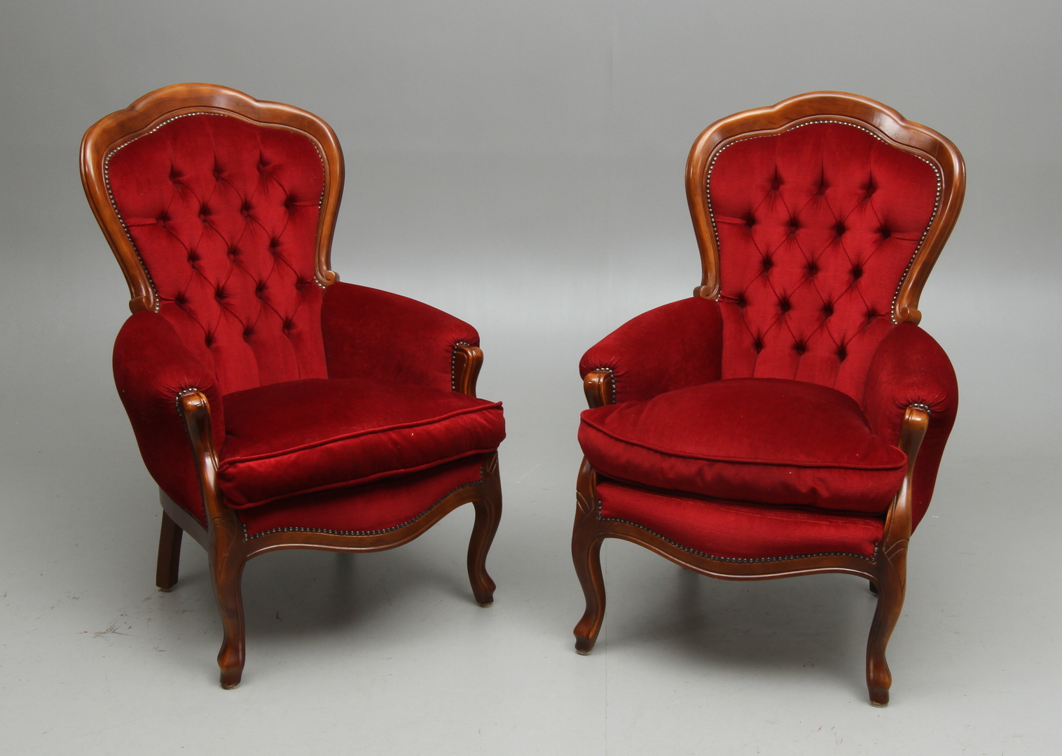 34351. FÅTÖLJER, ett par, nyrokokostil, 1900-tal.