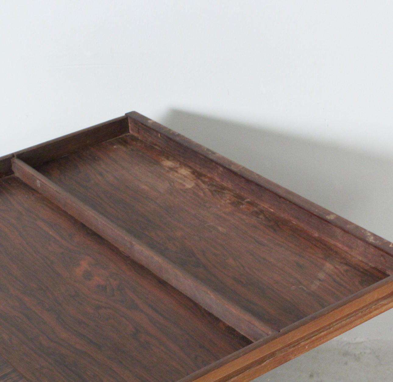 Johannes Andersen, soffbord/soffbord, Danmark, 1960-tal, utrustad med en utdragbar bordsskiva i ena änden och med utdragbar låda i den andra änden,