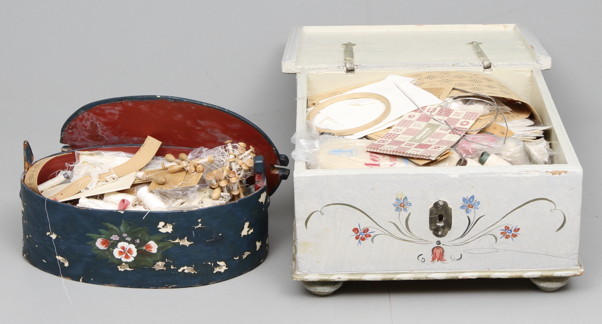 34412. KISTA och SVEPASK med Handarbetsmaterial.