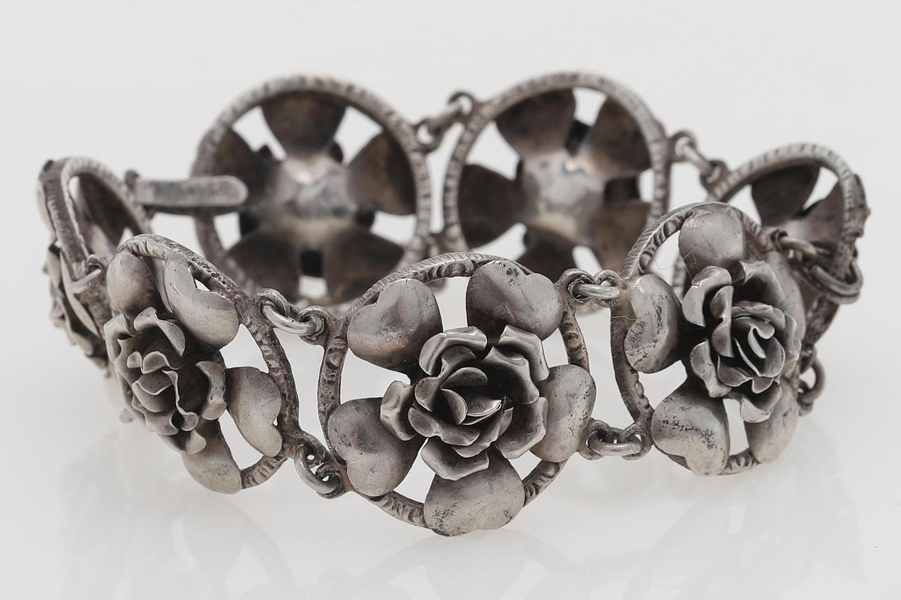 3447075. ARMBAND, blommor, silver.