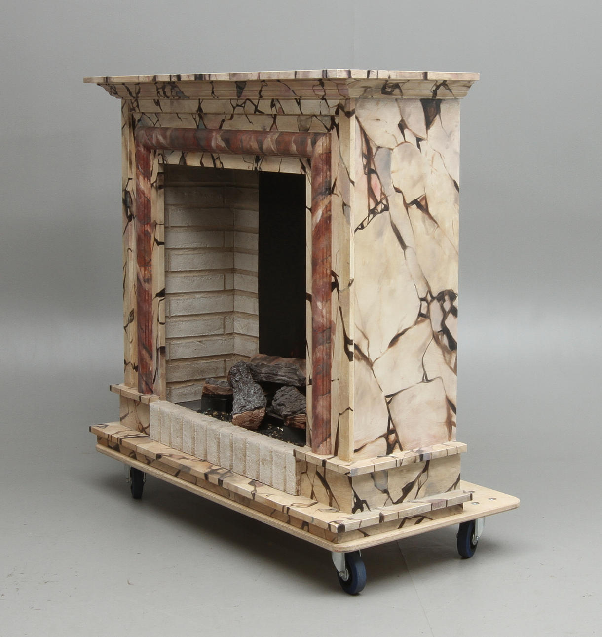 Marmorerad dekor. Medföljer keramisk ved. Längd 121, bredd 42, höjd 107 cm.