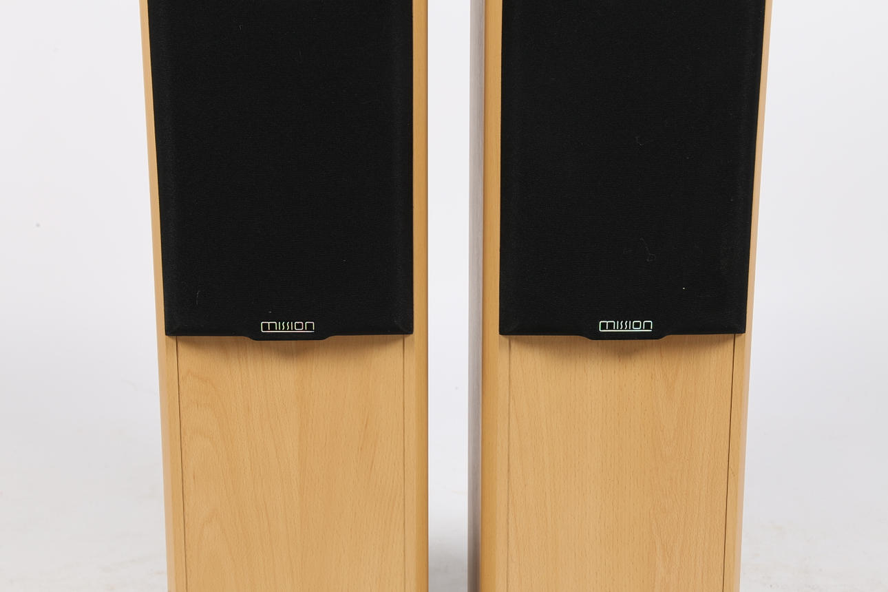 Ett par Mission 702e 100w golvstående stereohögtalare med 2-vägs reflexdesign och 8 Ohm impedans, serienummer 982 P 00516, 86cm höjd, 22cm bredd, 30cm djup. (2).