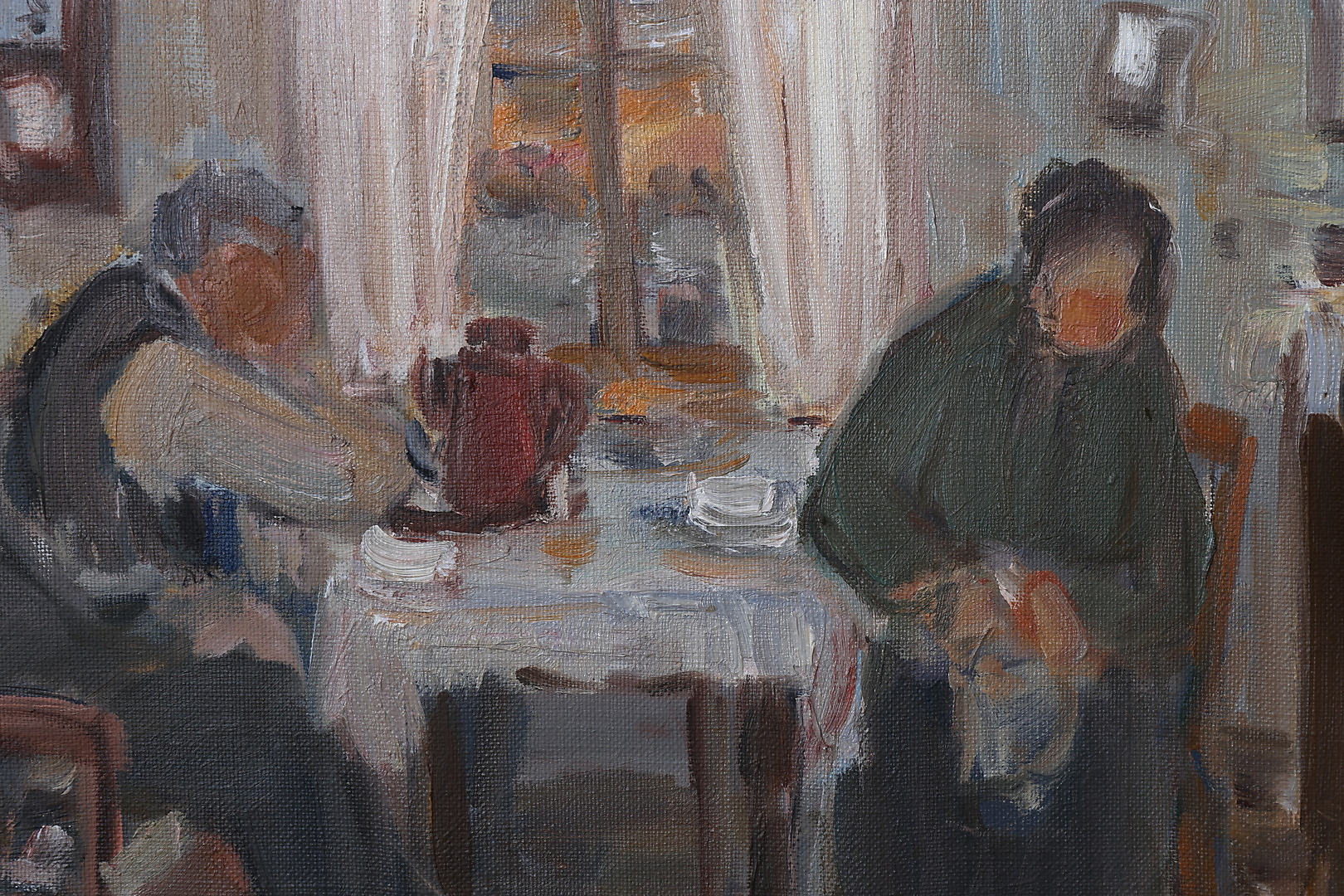345567. BROR JÖNSSON. Olja på duk, Interiörbild, signerad B Jönsson.