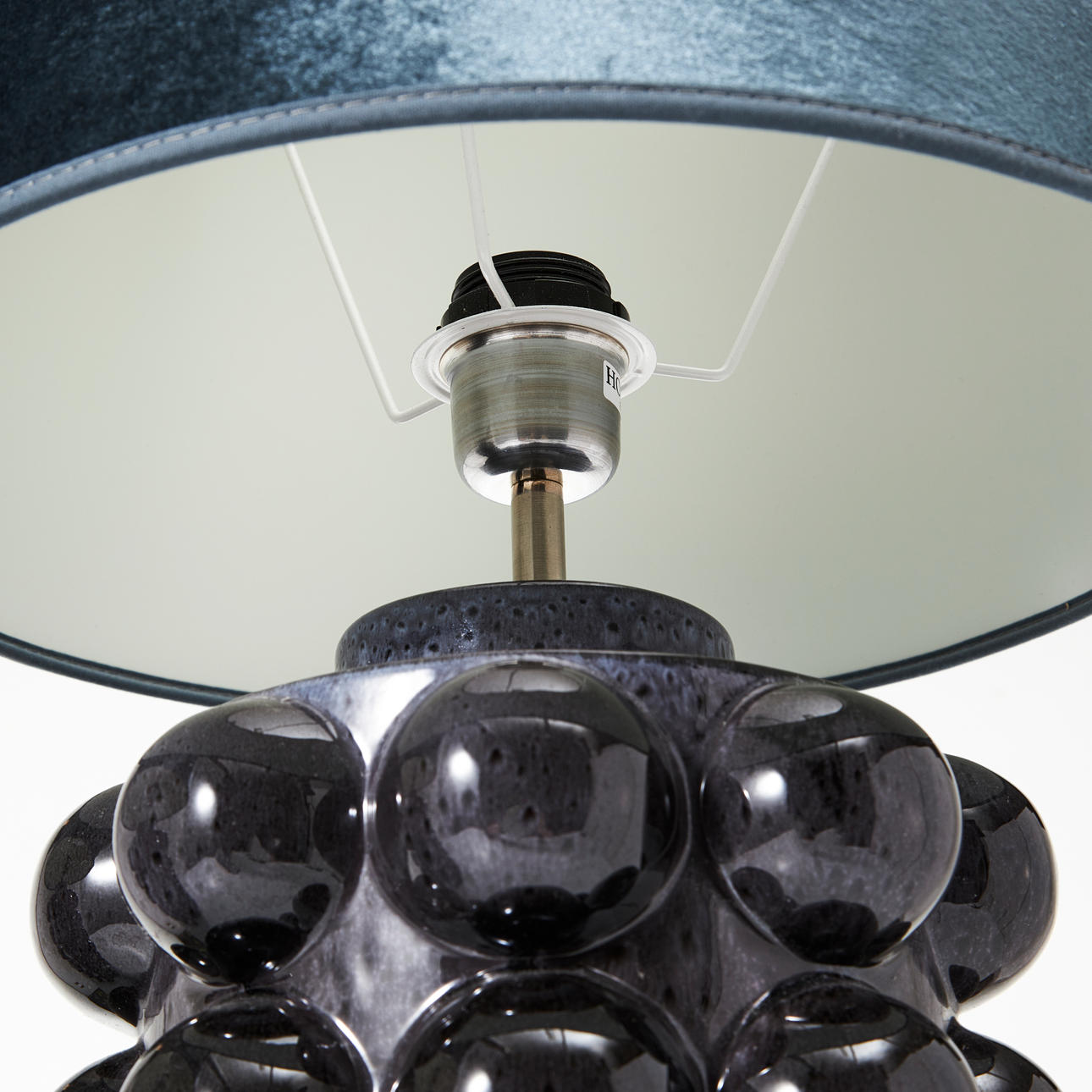 glaserad keramik, etikettmärkning, total höjd inkl skärm ca 68 cm.