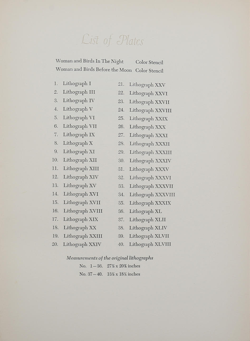Två ”XVIII” och ”XLII” litografier redigerade av Curt Valentin och gjorda av Meriden Gravure Company i New York 1947.