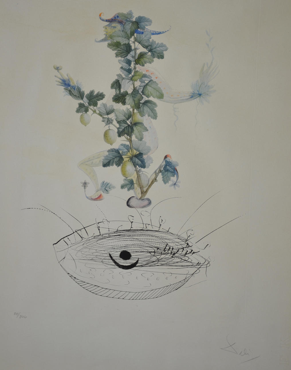 Flordali (Les frukter) Révérence du Groseillier 1969/70. Färglitografi och relieftryck på BFK Rives uppfostrat papper.