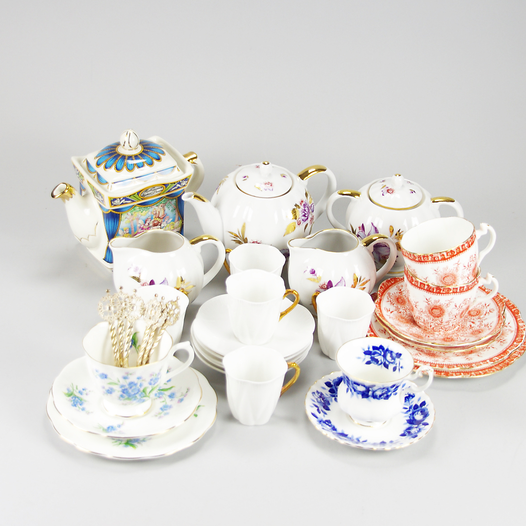 346281. KAFFESERVISDELAR, porslin, mestadels England.