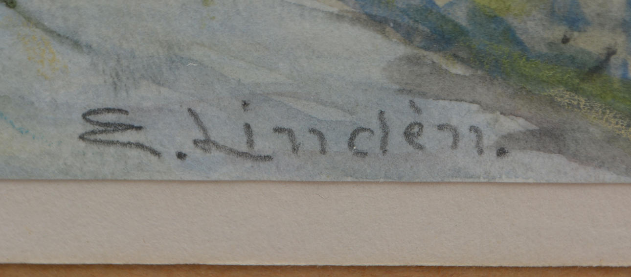 E. LINDEN. Rocknevägen. Bredaryd. Akvarell.