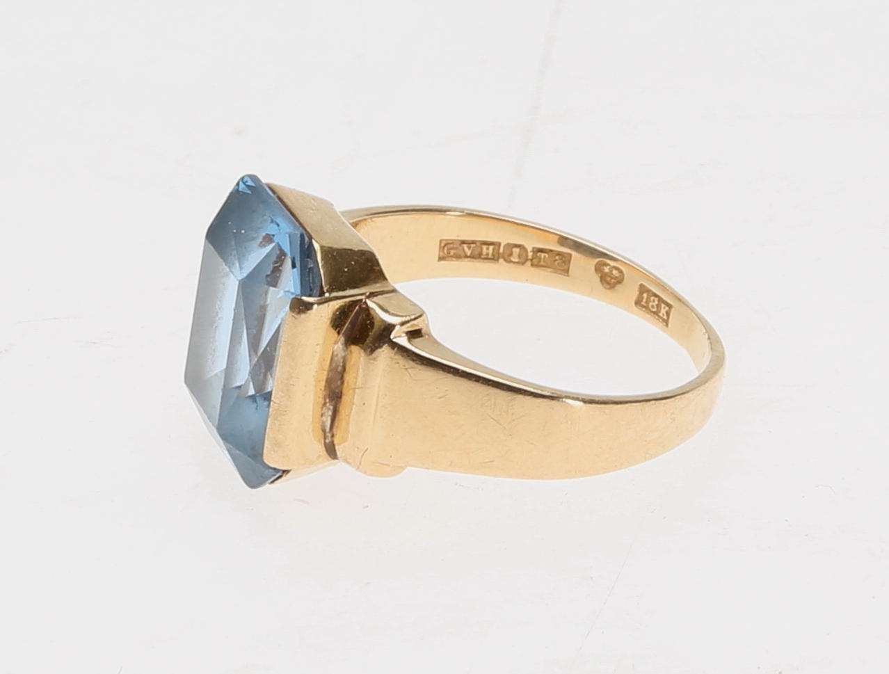 346875. RING,guld,18K,blå safir,2,5carat, 1945.