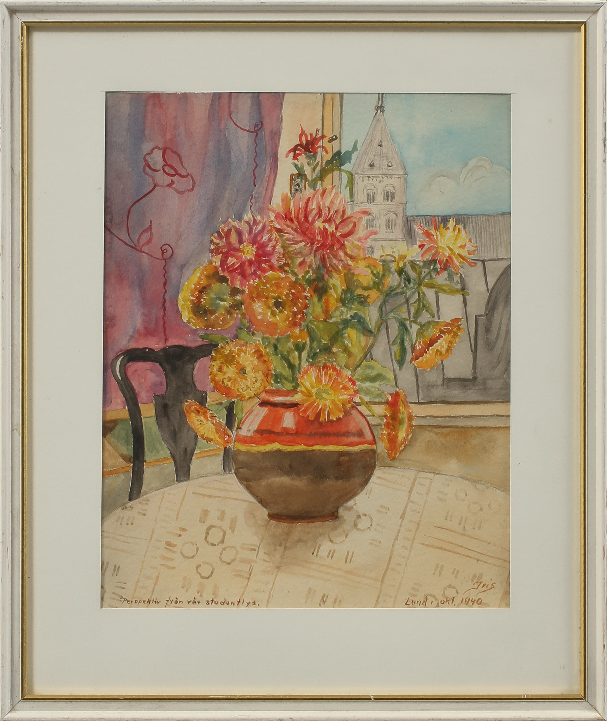 346982. IRIS NORDSTRANDH. Blommor, akvareller, 2 st, signerade.