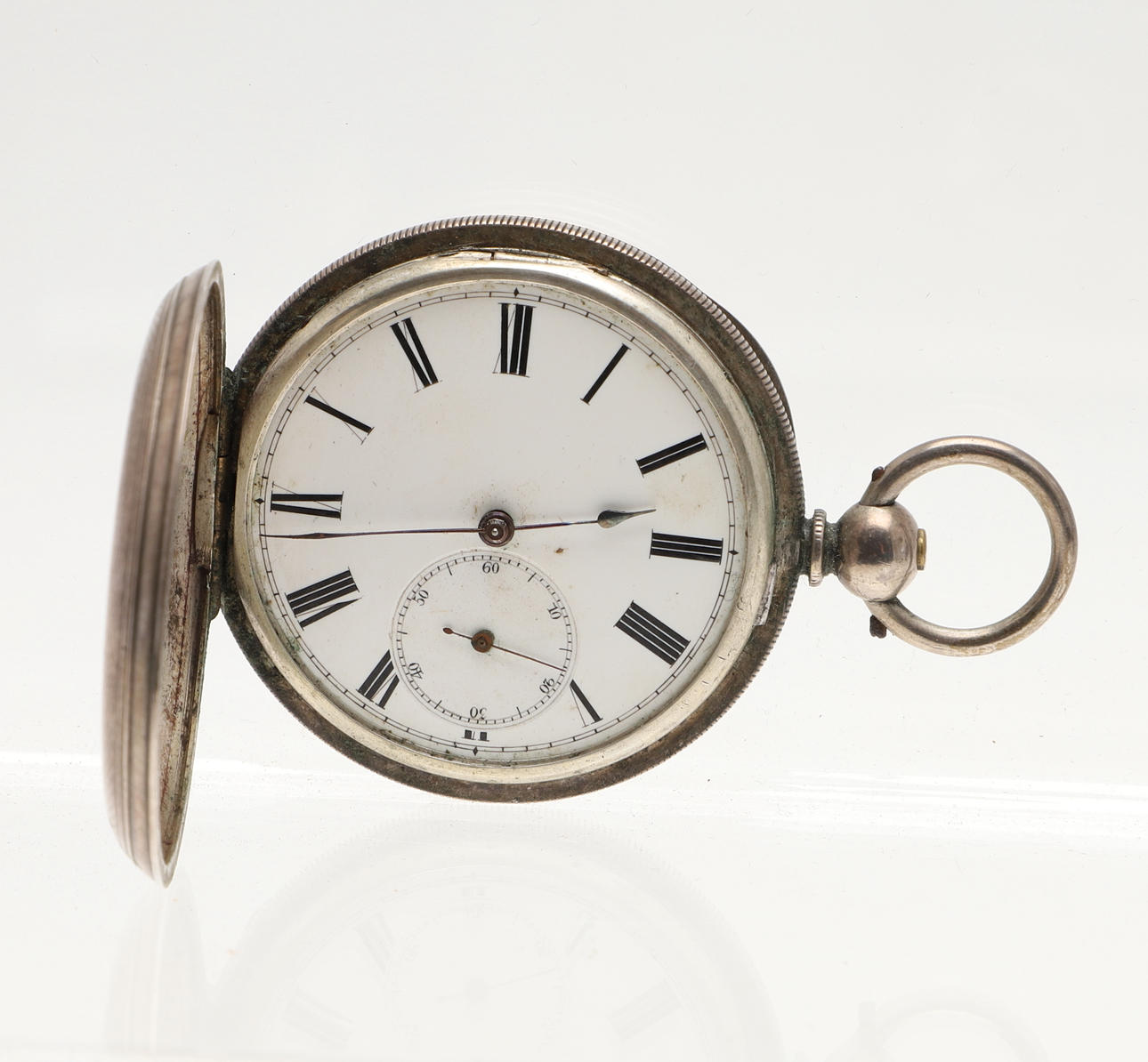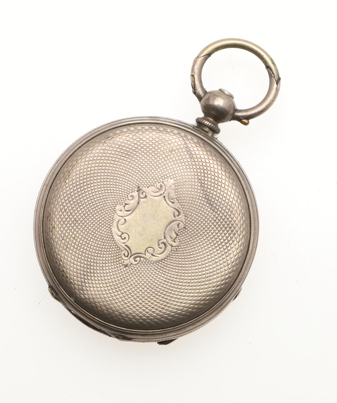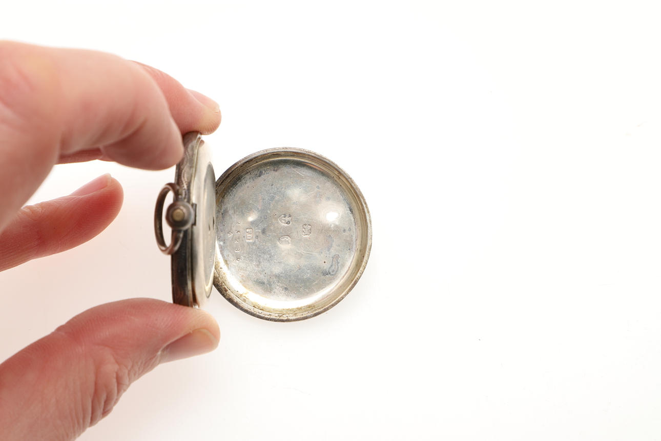 Ett fullt jaktfodrat fickur och två andra, två märkta Fine Silver och en med engelskt stämpel.
