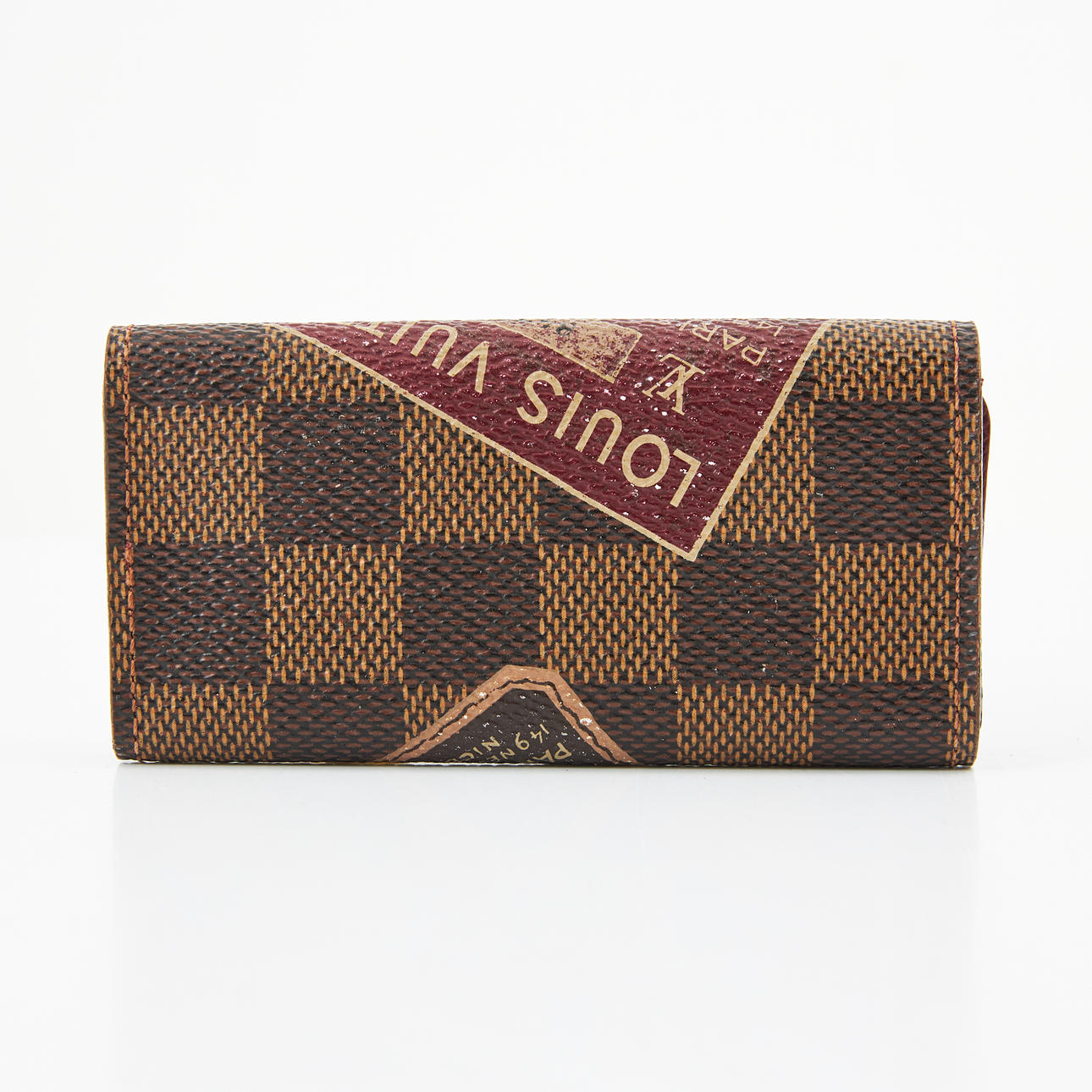 I ebene damier canvas, stängs med tryckknapp, fodrad i oxblodsfärgat skinn, med fyra nyckelringar, märkt "Louis Vuitton Paris made in France", mått ca 10.5x5.5x1cm.