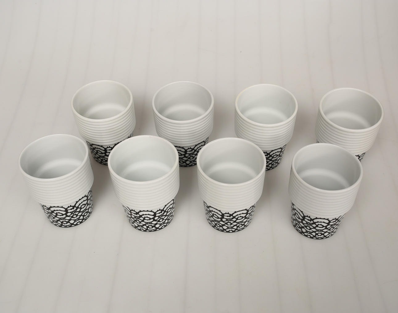 Lätt bruksslitage, en av muggarna med två sprickor i godset. I övrigt välskötta.