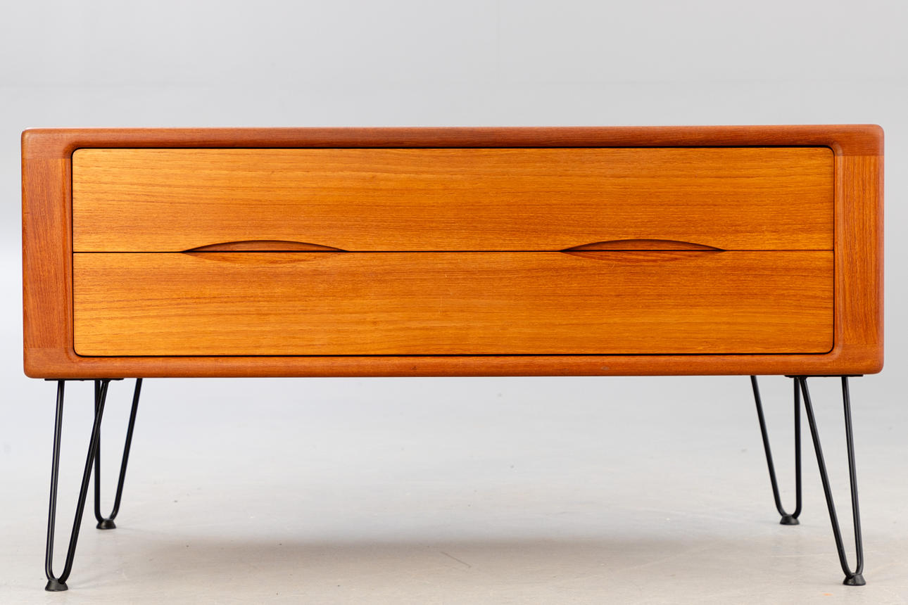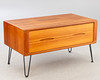 Lådlåda med 2 teaklådor på 4 svarta ståltrådben.