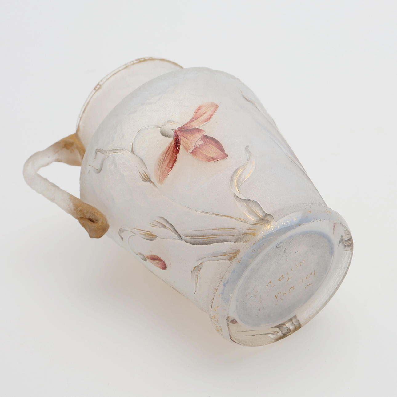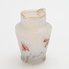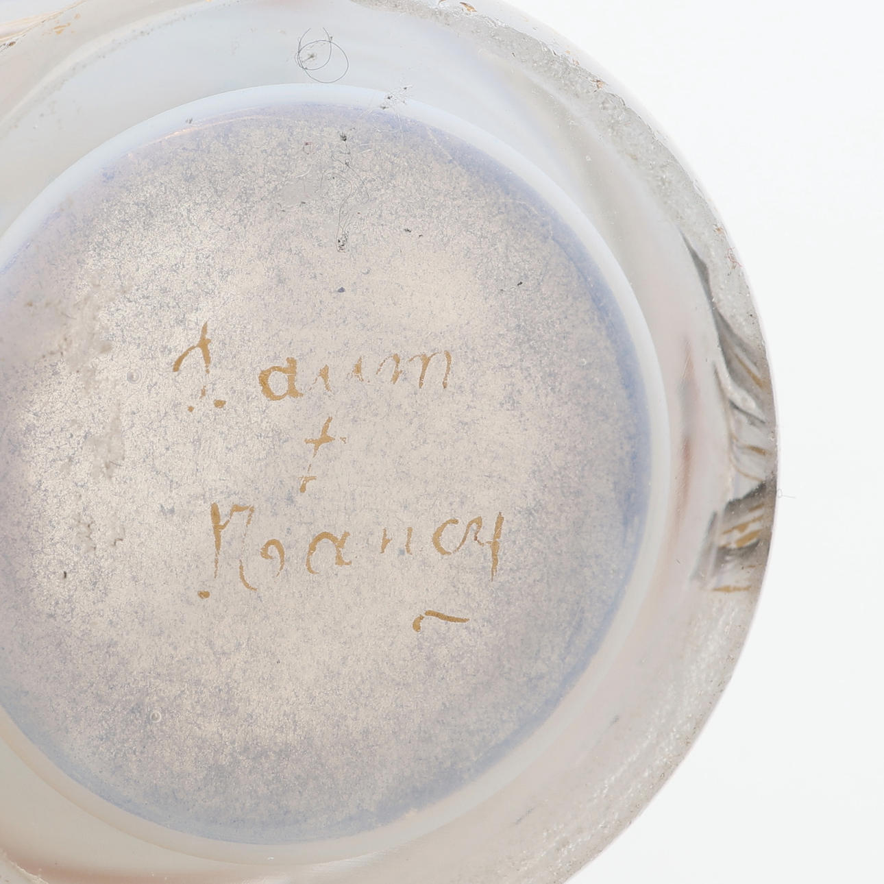Art Nouveau, opaliserande glas i ljusblått och vitt med etsad dekor av röda blommor, förgylld signatur, "Daum Nancy" och med Lorraines kors, Frankrike, 1900-talets första hälft, höjd 7 cm.