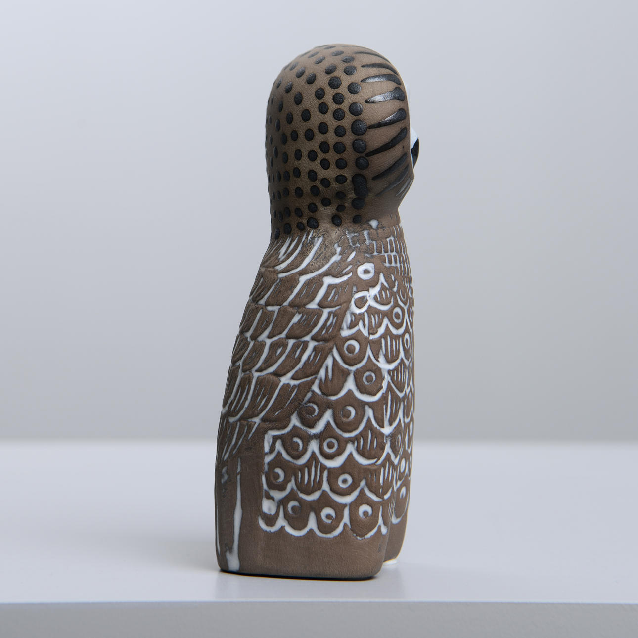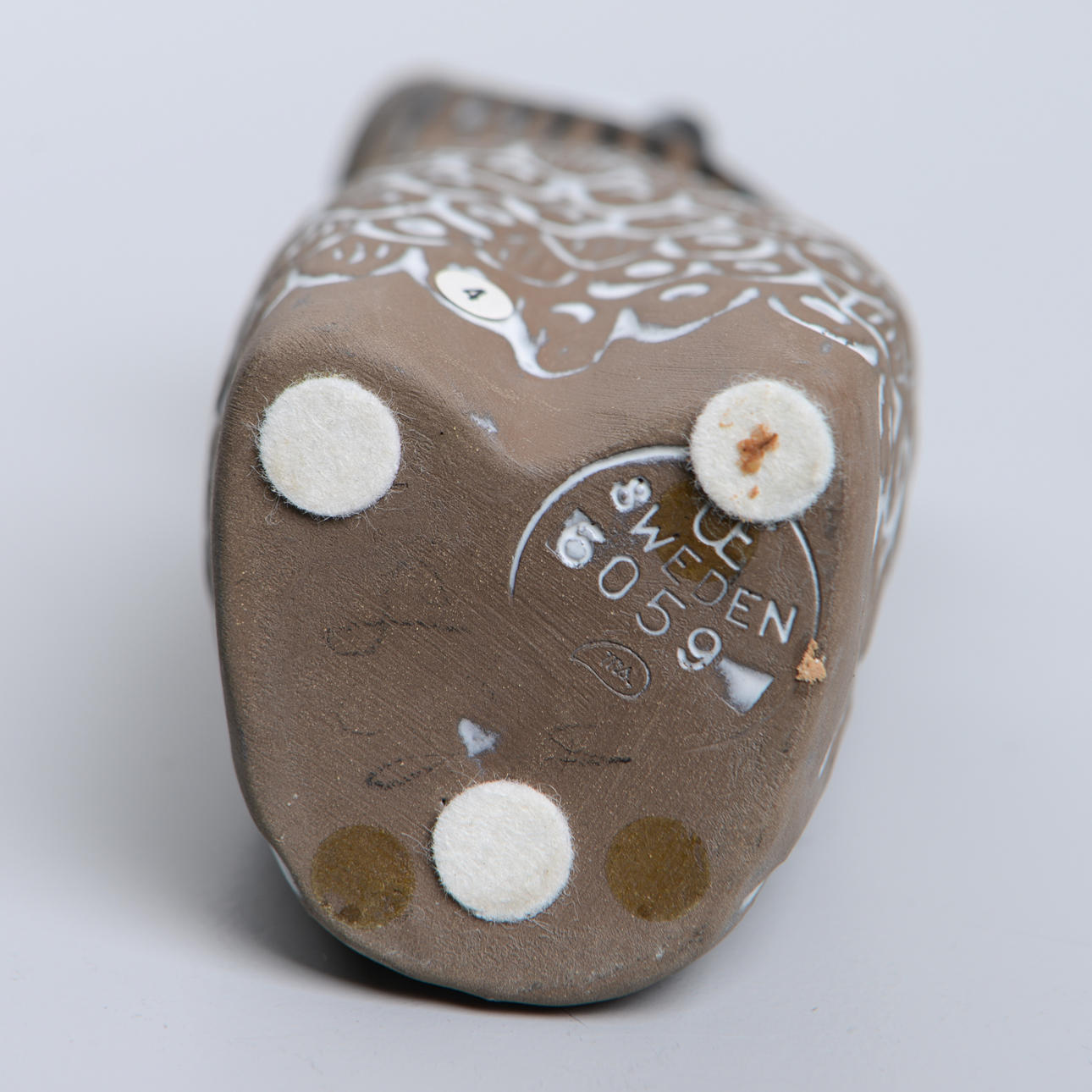 Lergods. Märkt och signerad på undersidan. Höjd 17,5 cm.