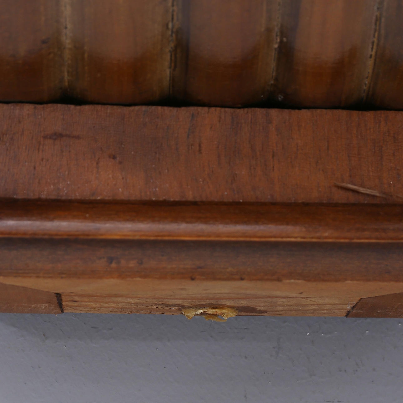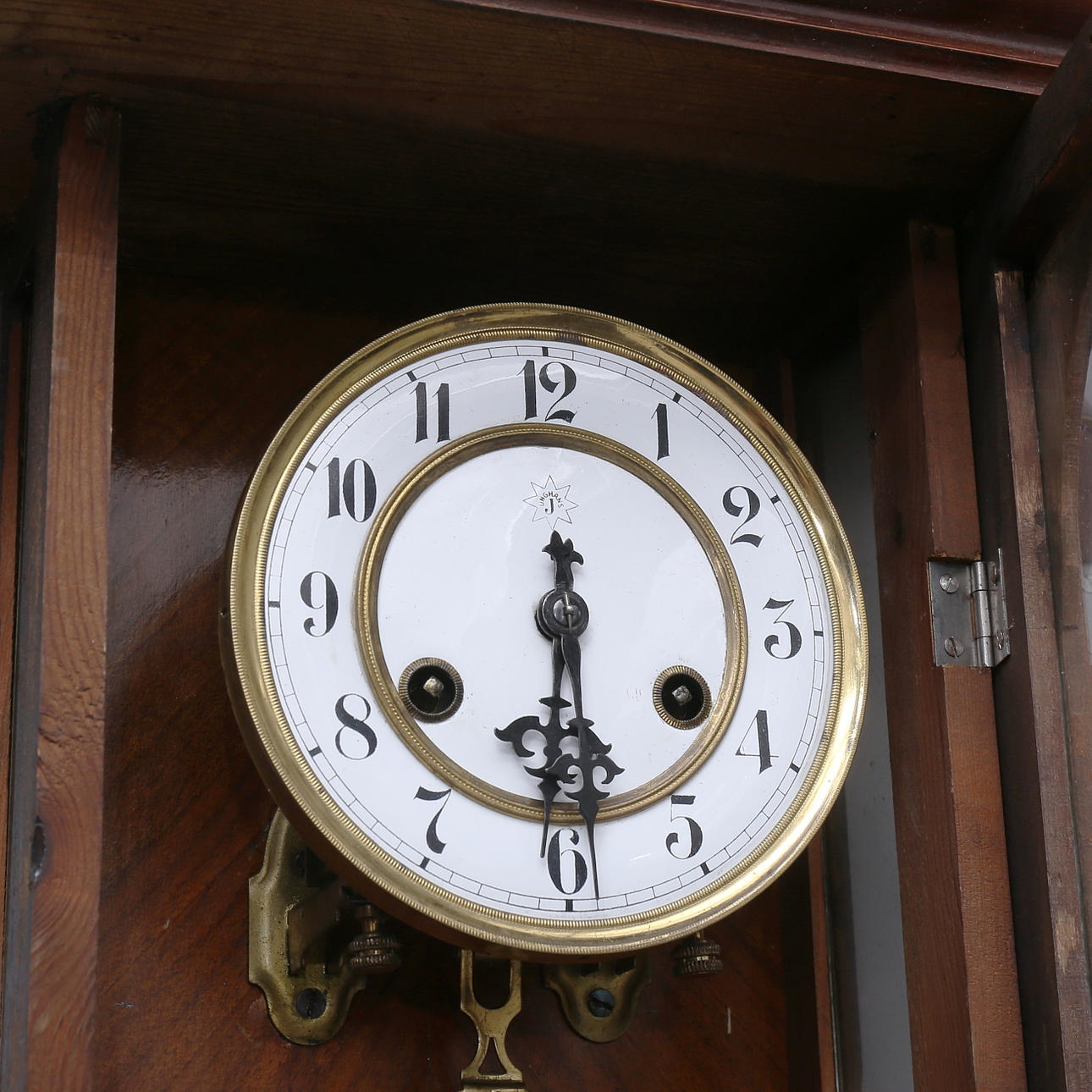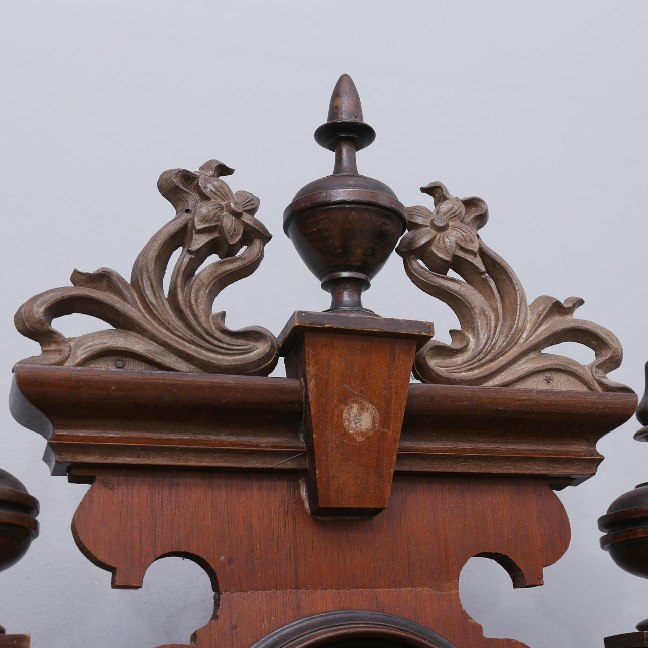 Ej funktionstestad Fäste till nedre dekor skadad Dekor saknas på krön Fläckar, märken Pendel med bucklor.