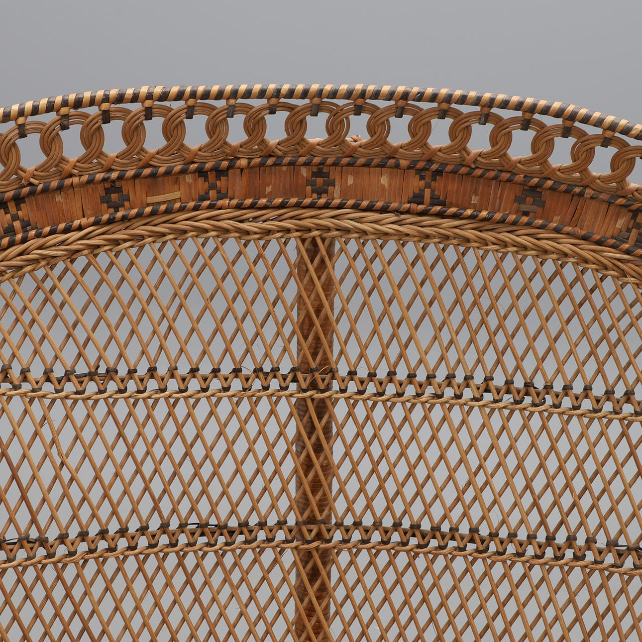 Flätad rotting. Bredd 100, höjd 136, sitthöjd 45 cm.