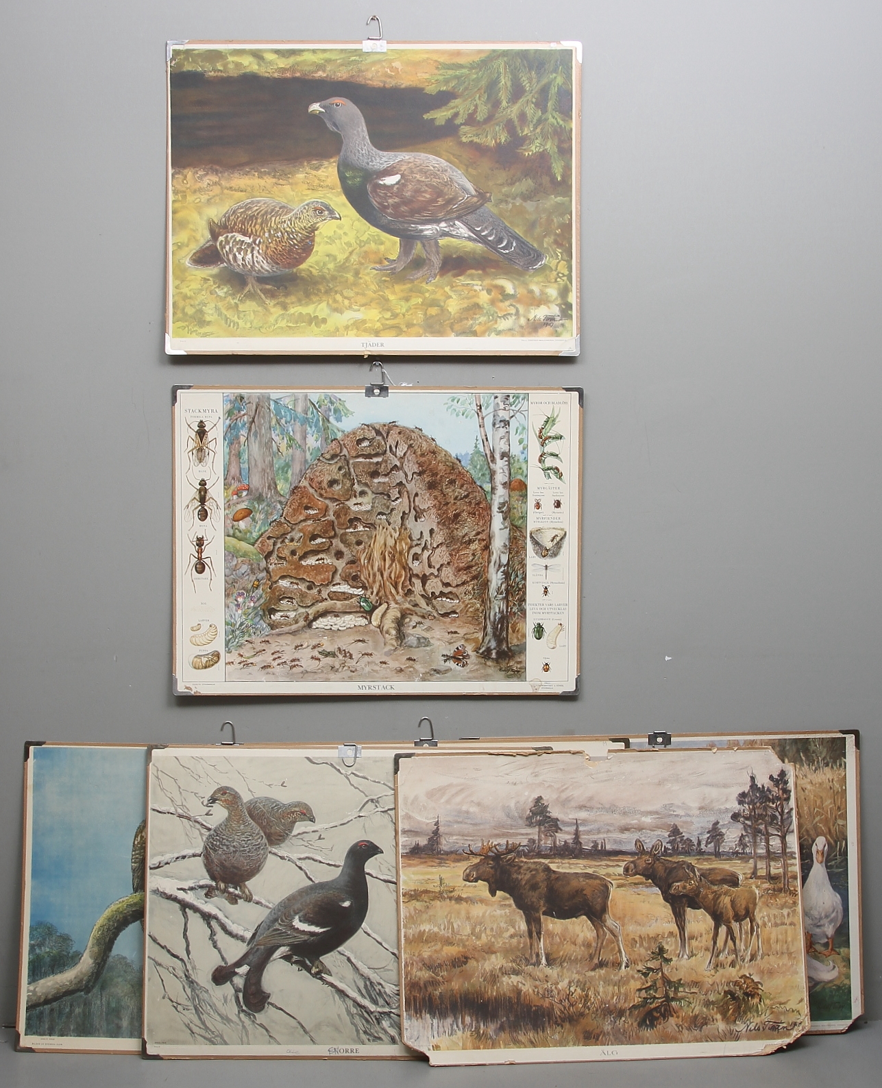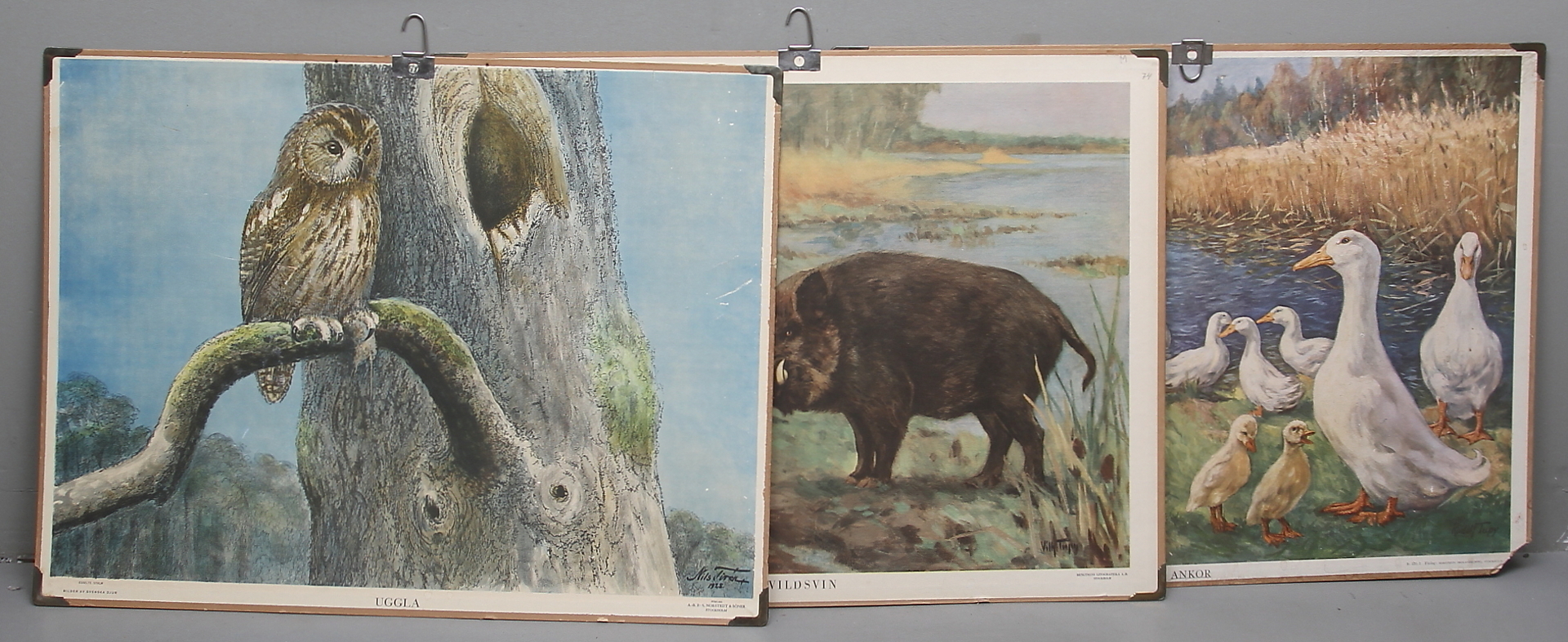 347605. SKOLPLANSCH, 7 st, bl.a. "Uggla", "myrstack", "vildsvin".