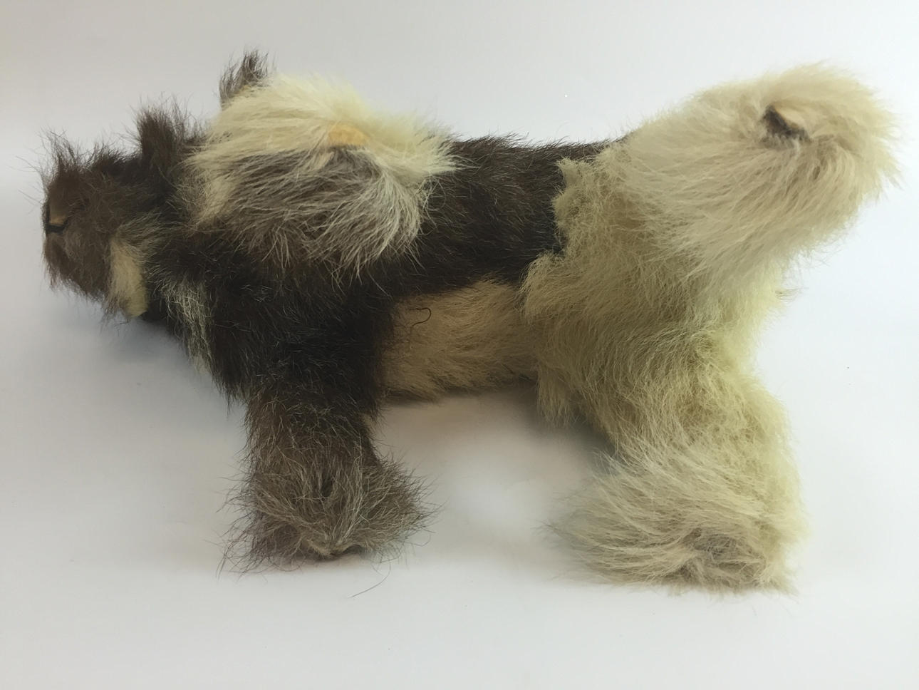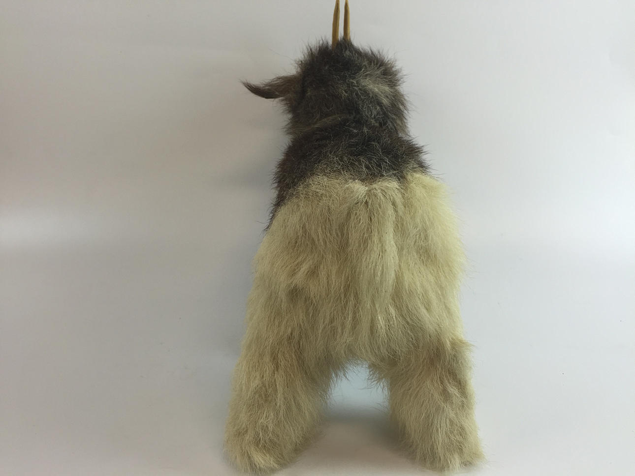 Med horn och bjällra om halsen. Mankhöjd 21 cm, längd 32 cm.