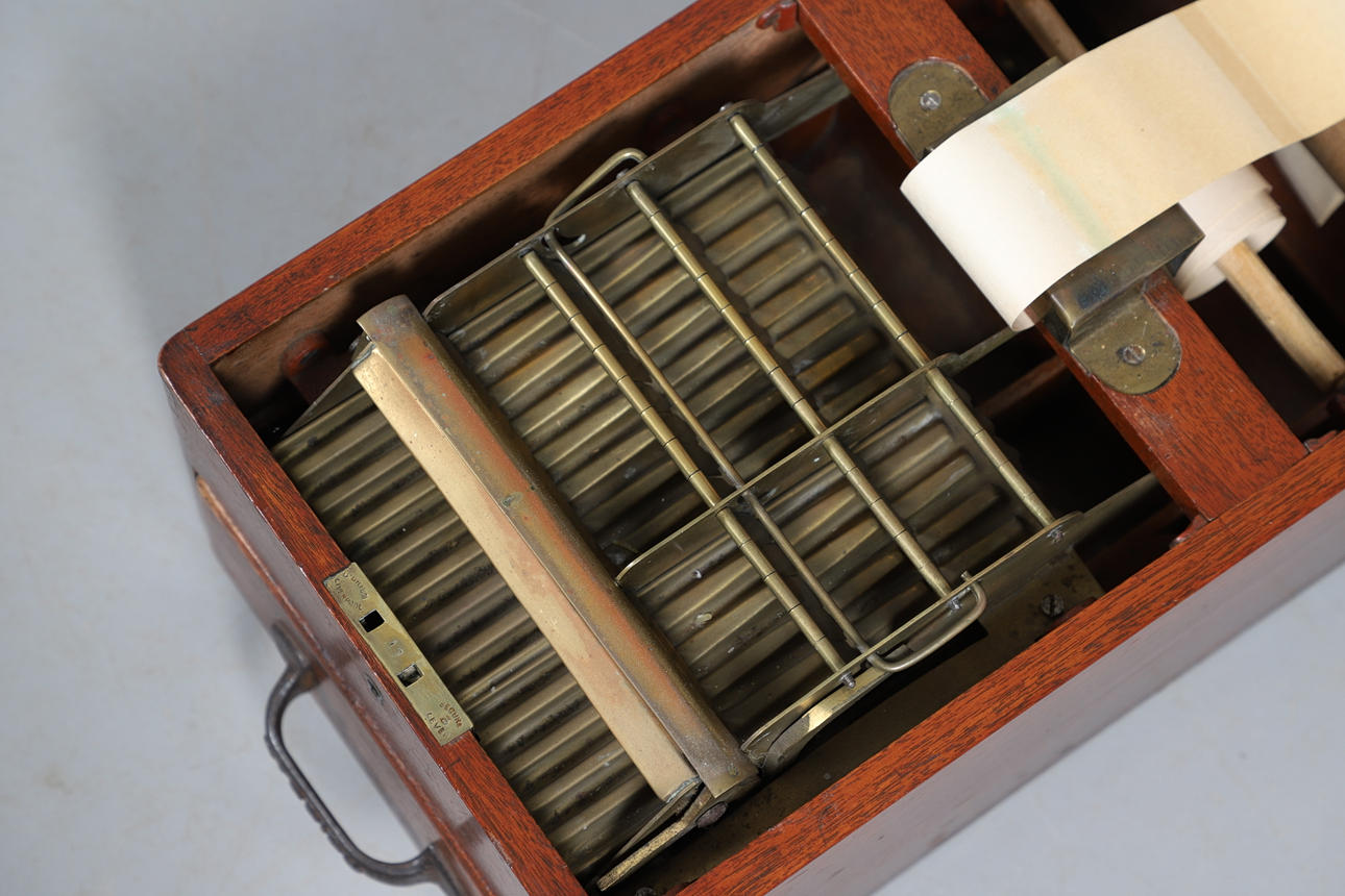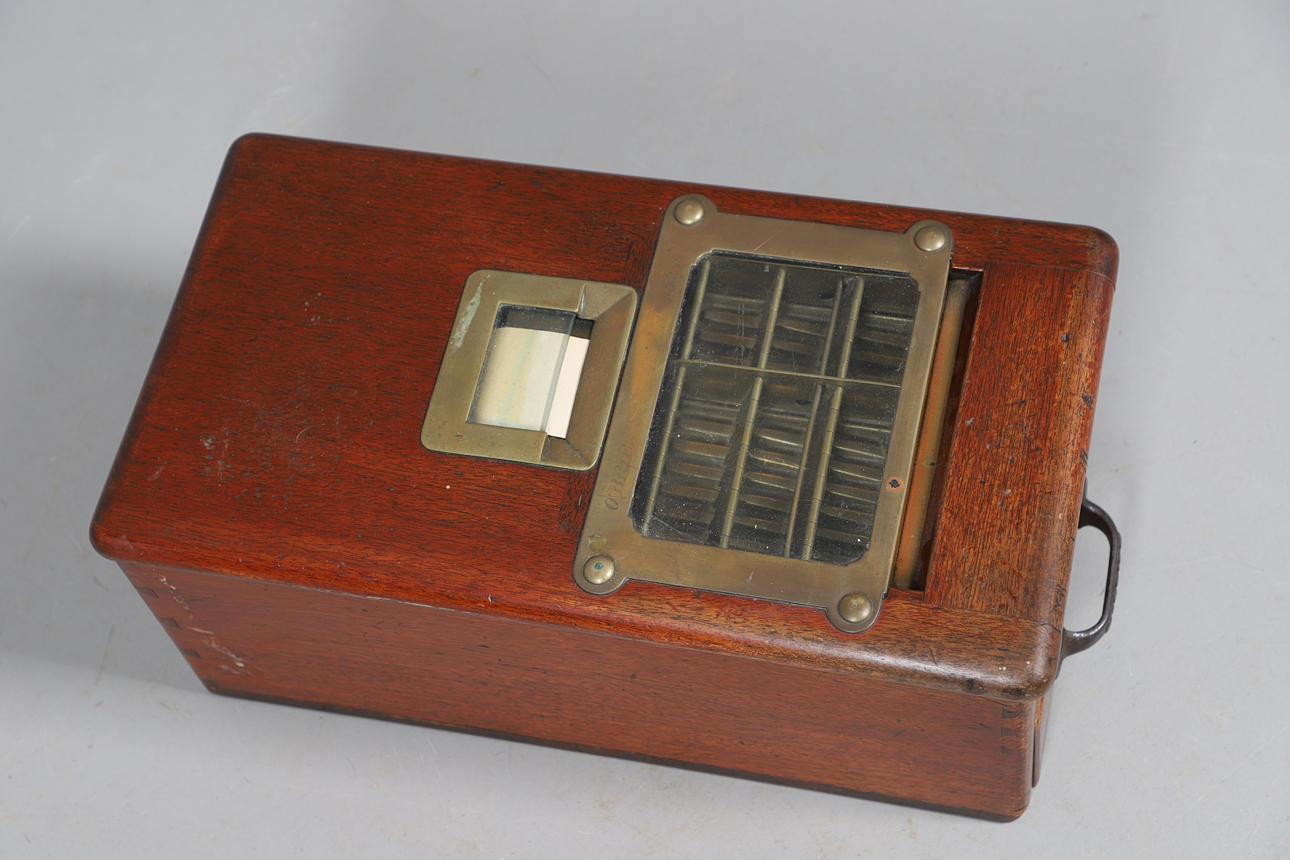 utsiktsplattformen av glas och mässing, inskriven O'Briens patent nr. 4525, 20 cm hög x 25 cm bred x 48 cm djup.