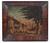 Naiv gatuscen med figurer olja på duk 28 x 33 cm.
