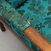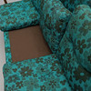 Bruksslitage, smärre skrapmärken. Klädseln med hårdare slitage. Dynorna nedsuttna, smuts, smärre hål.