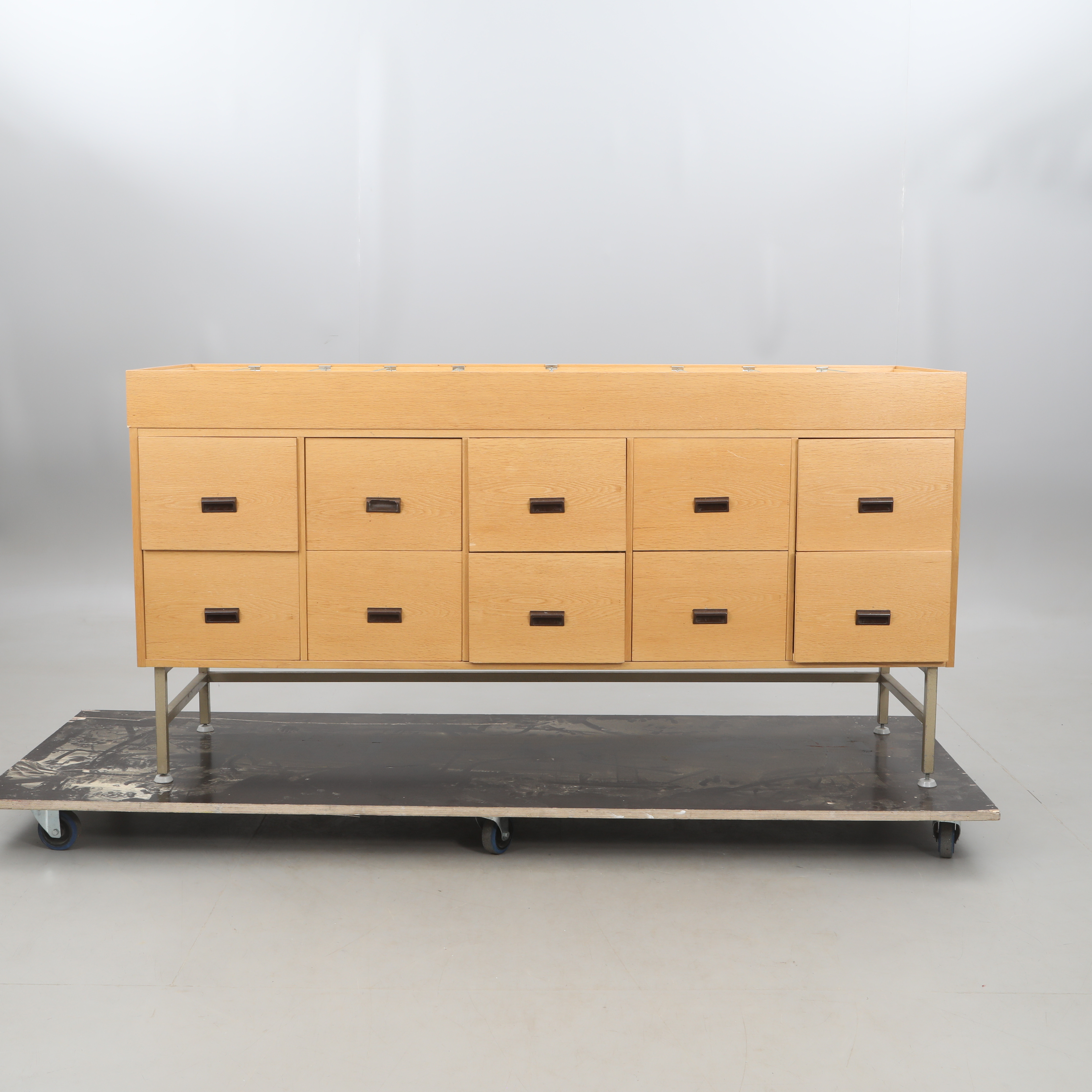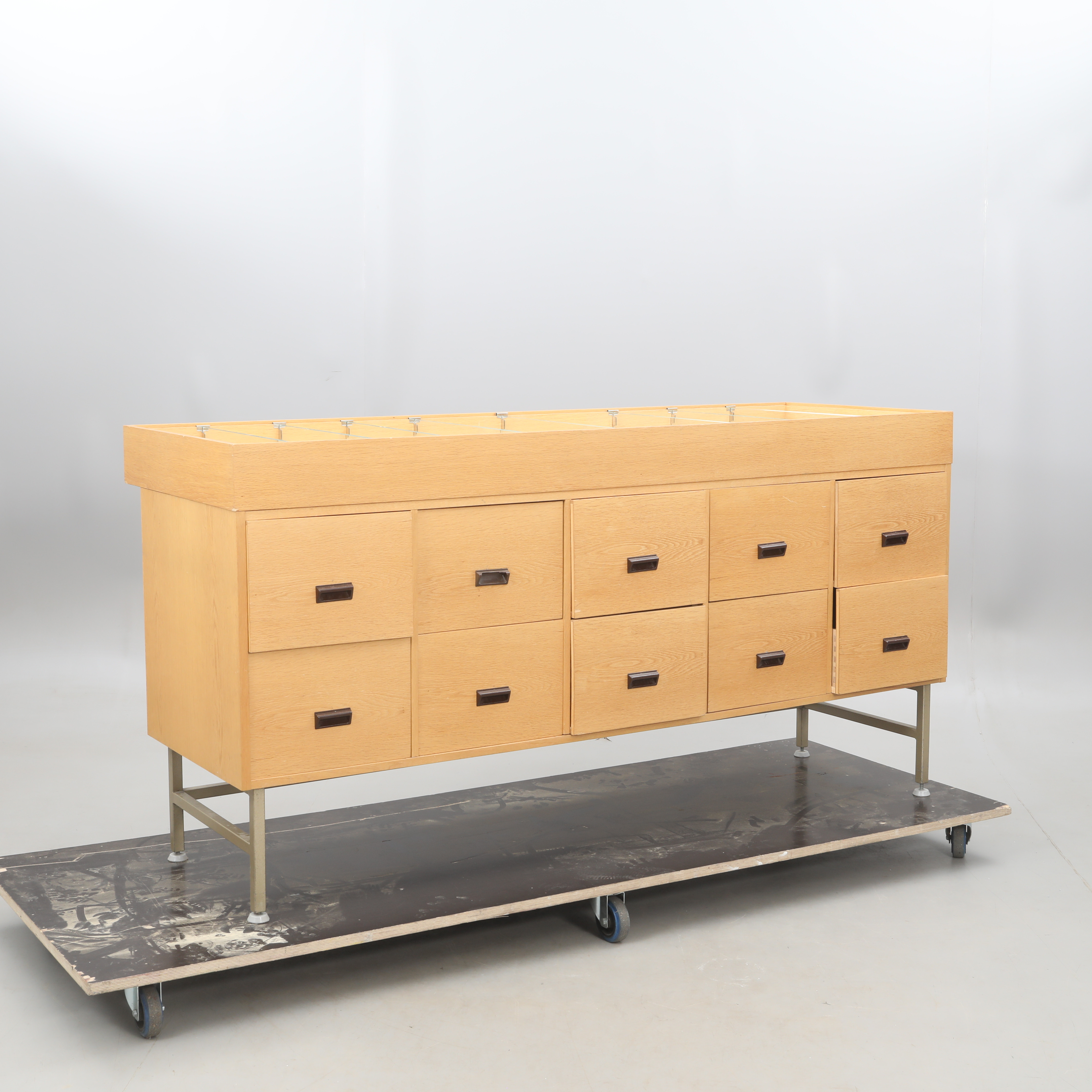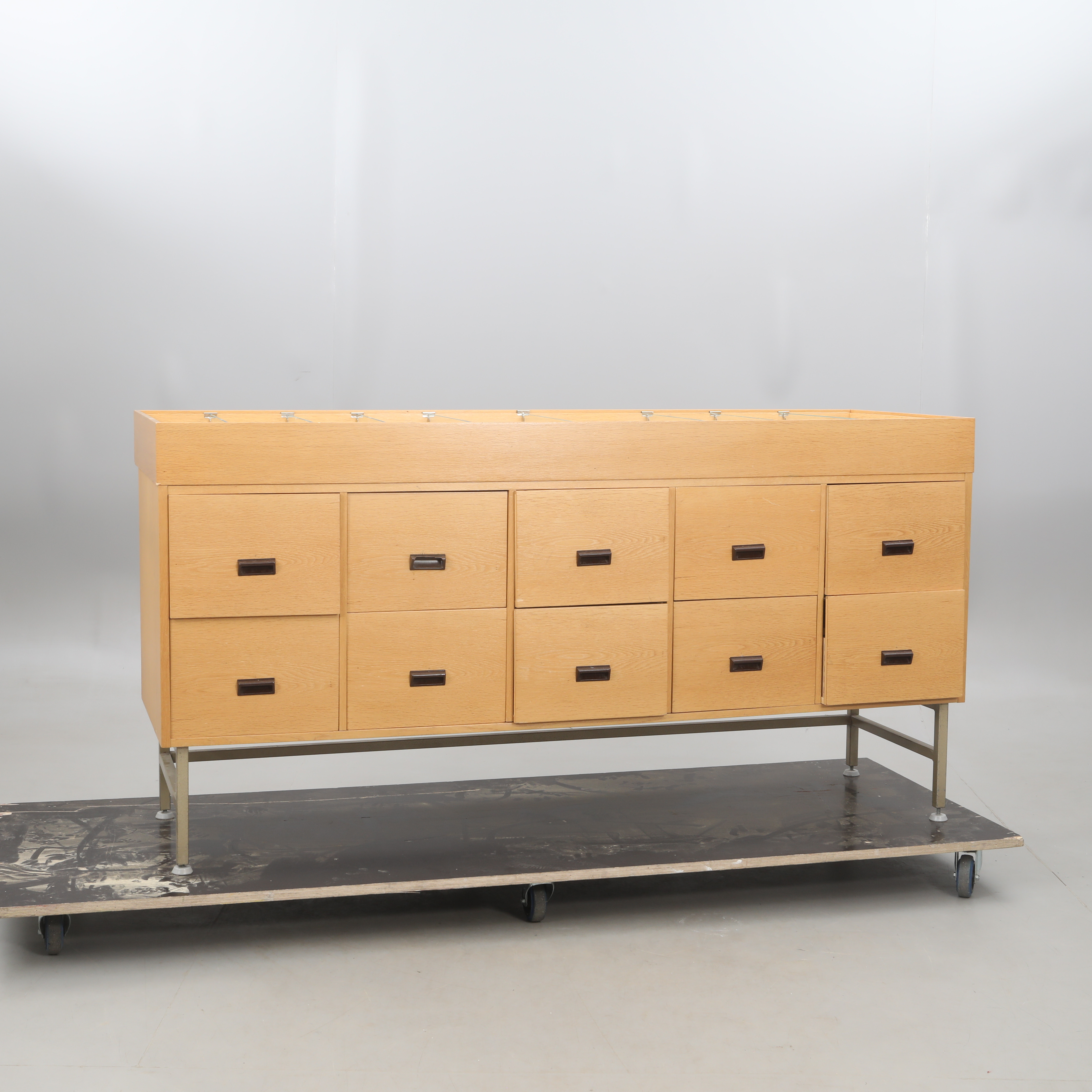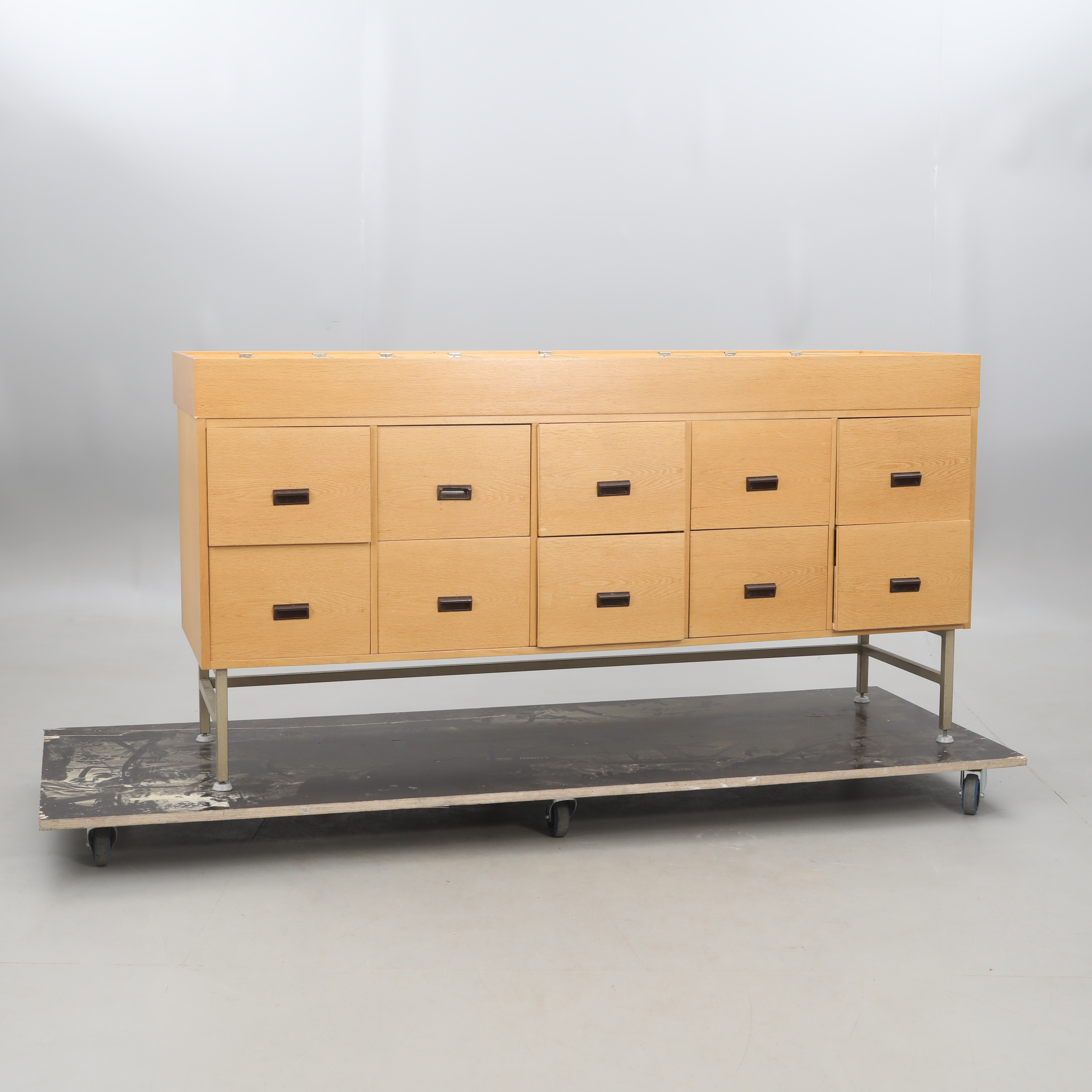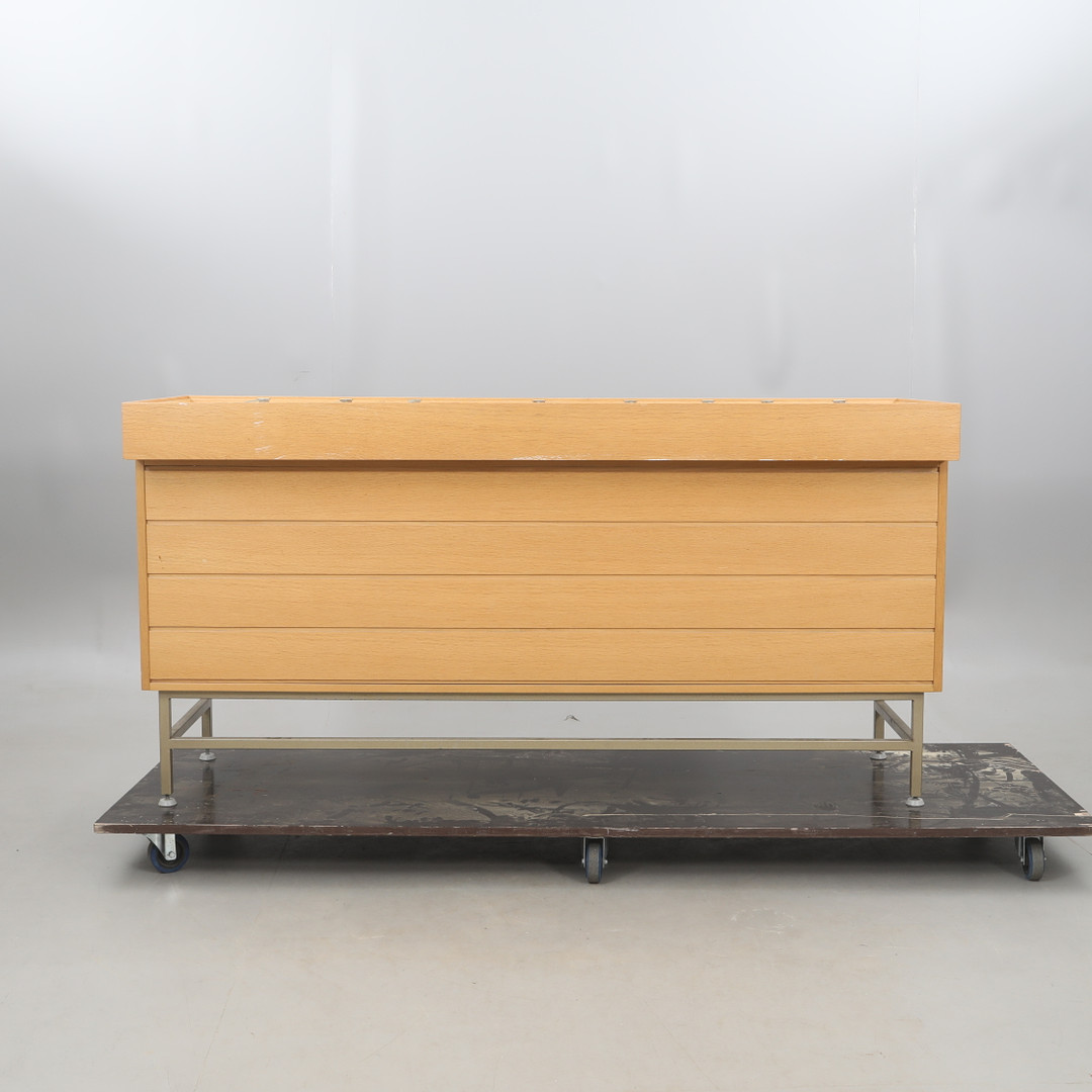 3485578. KÖPMANSDISK, metall/trä stomme.