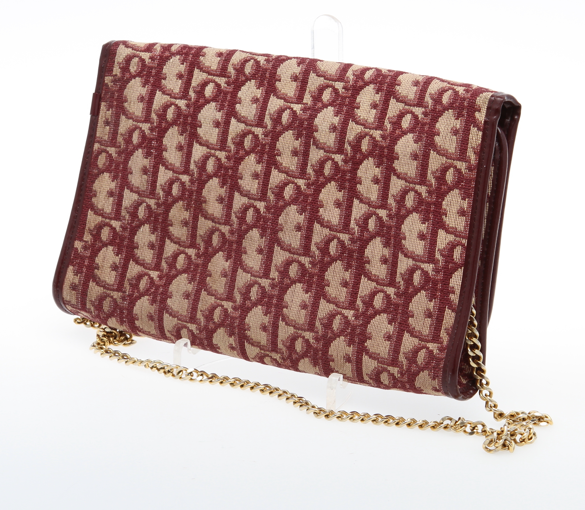 34869. CHRISTIAN DIOR. Aftonväska, textil och läder.