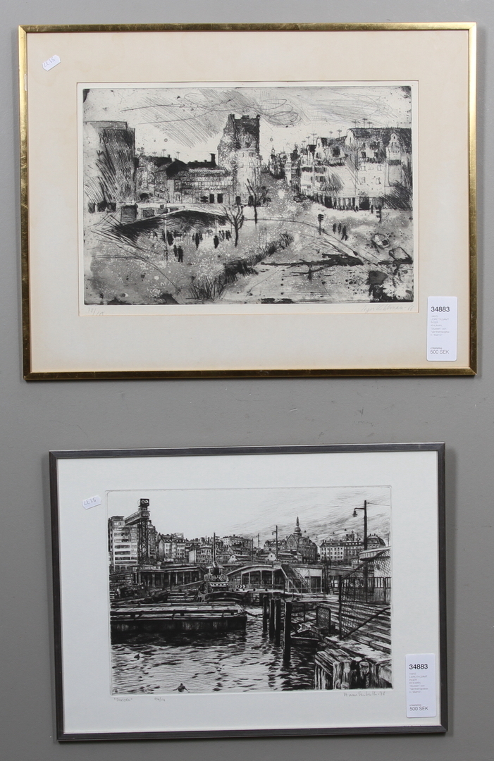 34883. HANS LIDROTH,SAMT INGER KIHLMAN. "Slussen" och "Värnhemsplatsen i Malmö".