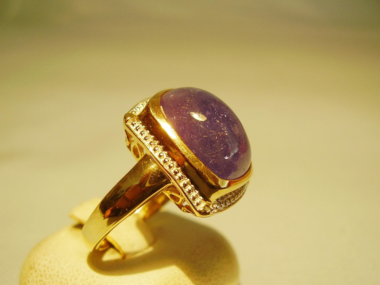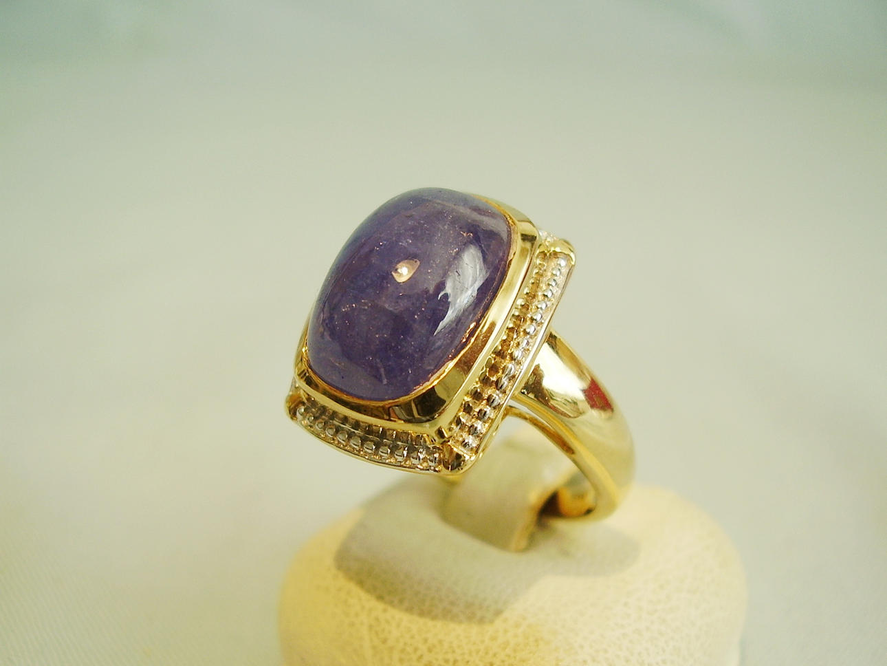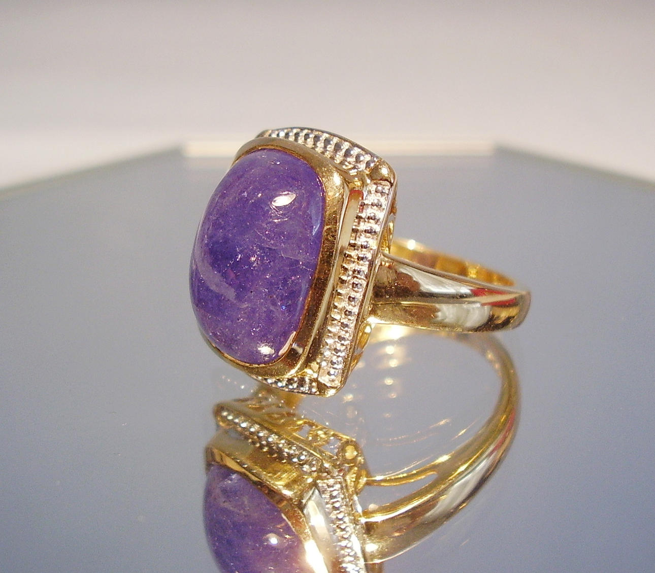 Rektangulärt ringhuvud set med en 9ct oval tanzanit cabochon i bästa AAA-kvalitet.