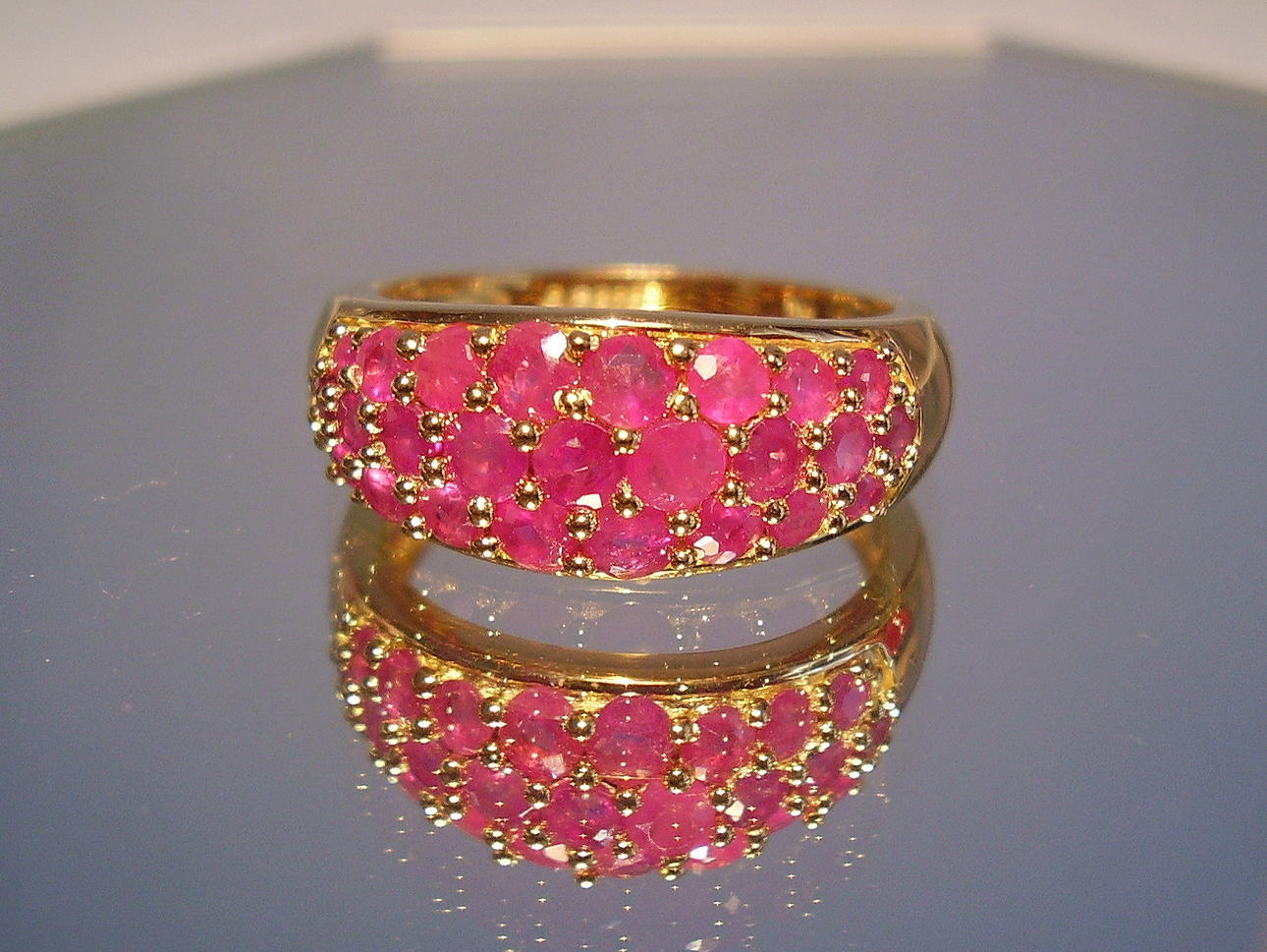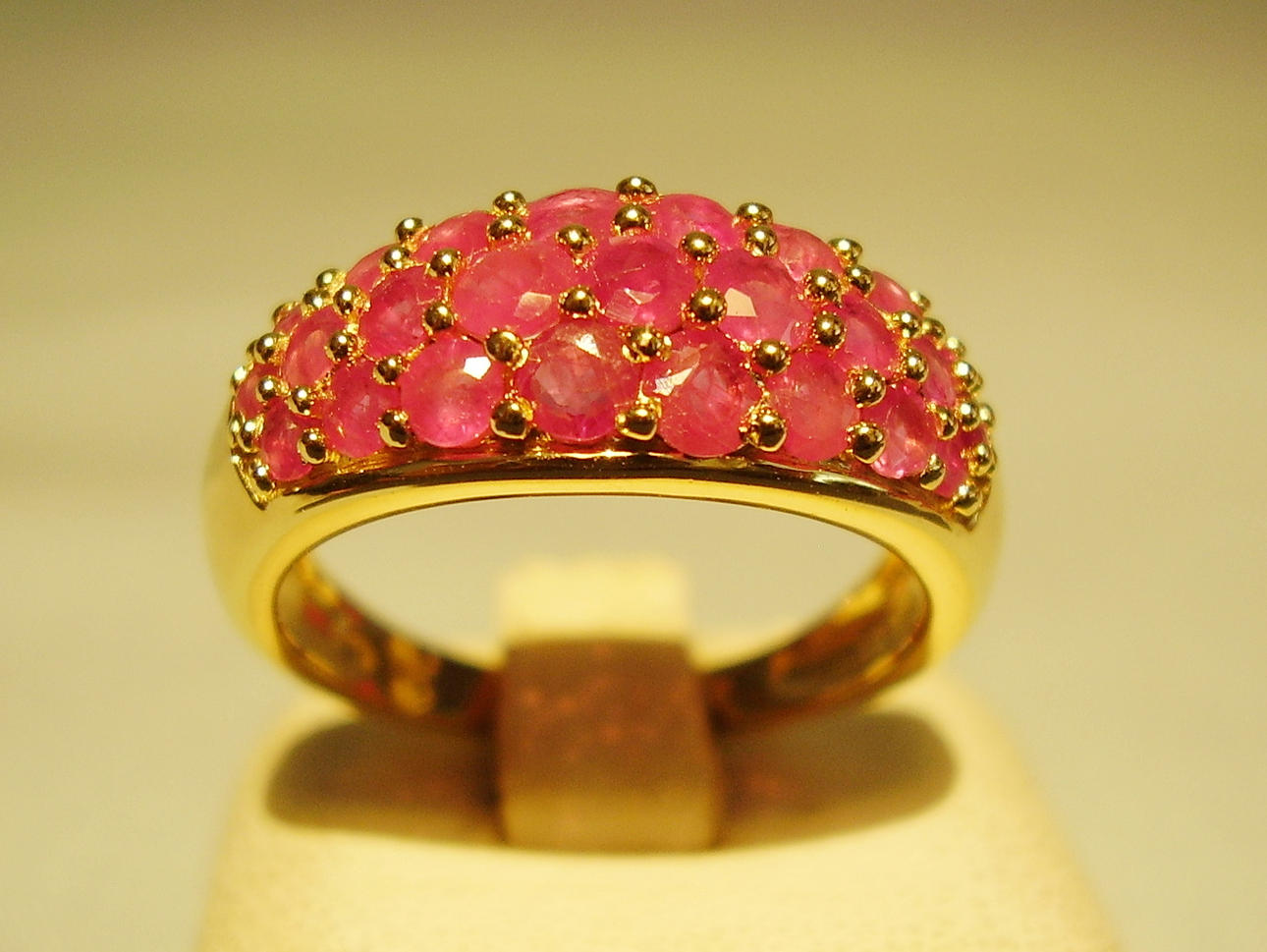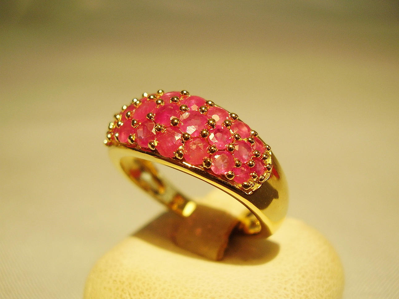 Ringhuvudet är satt med 25 runda fasetterade rubiner i en mycket fin färg på totalt 1,7 ct.