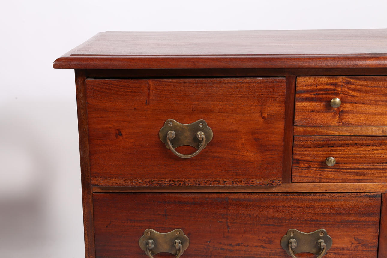 Utrustad med ett arrangemang av åtta lådor, 127 cm bred, 85 cm hög, 43,5 cm djup.