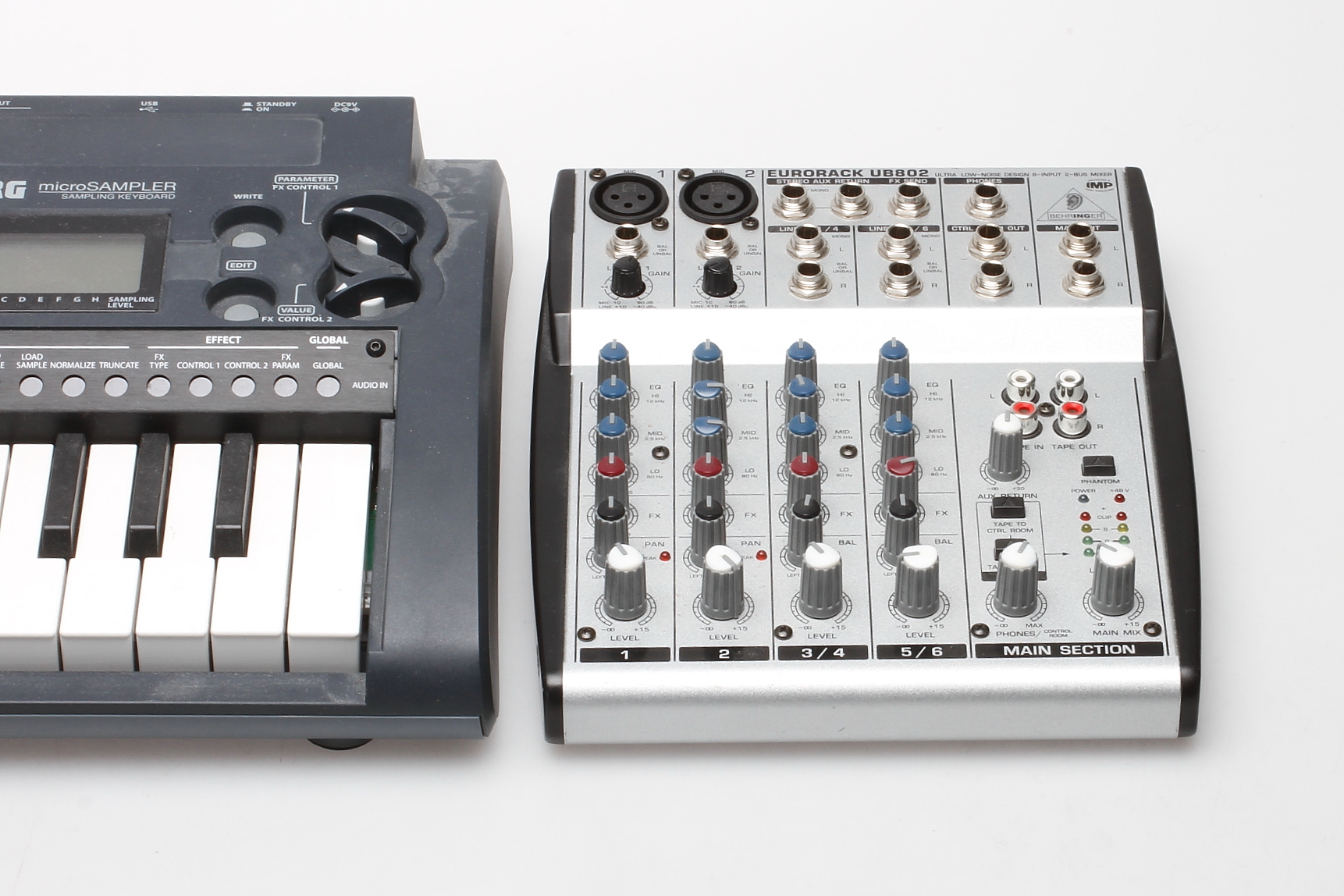 349617. MICROSAMPLER KEYBOARD samt MIXER, Korg, Behringer.
