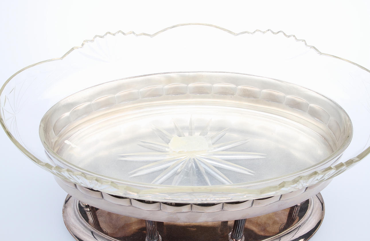 Med slipad glasinsats. Bredd 34, höjd 21 cm.